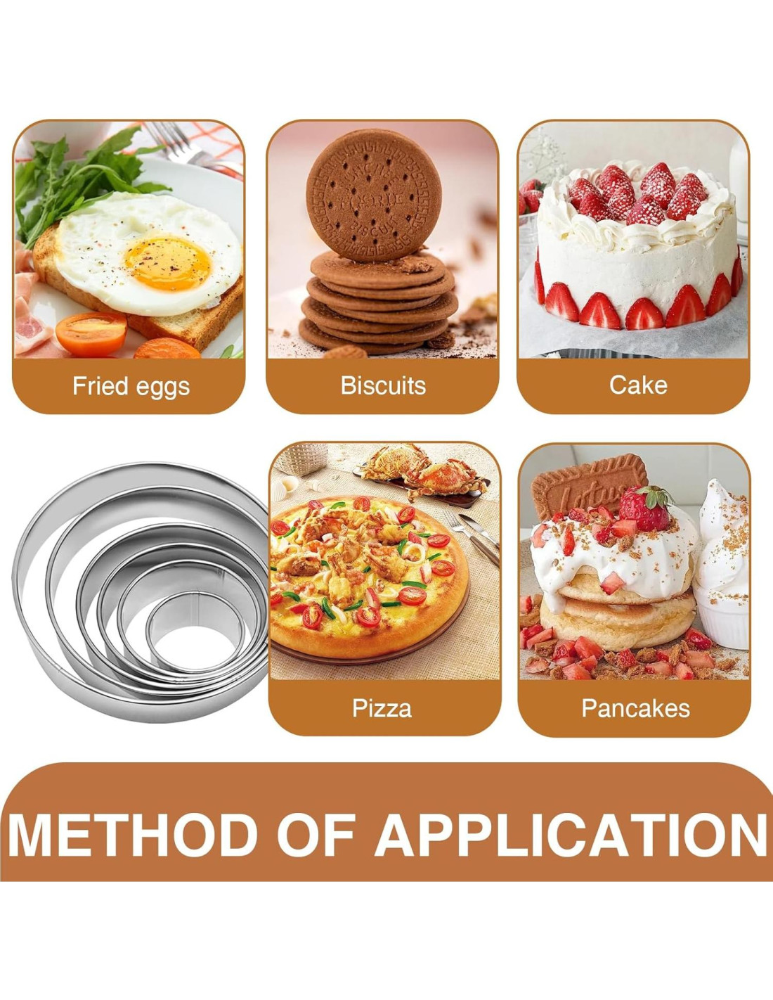 - 6 Tamaños para Hornear: El juego de cortadores de galletas redondos incluye tamaños de 5, 7.6, 8.9, 10.2, 12.7 y 15.2 cm para una repostería versátil