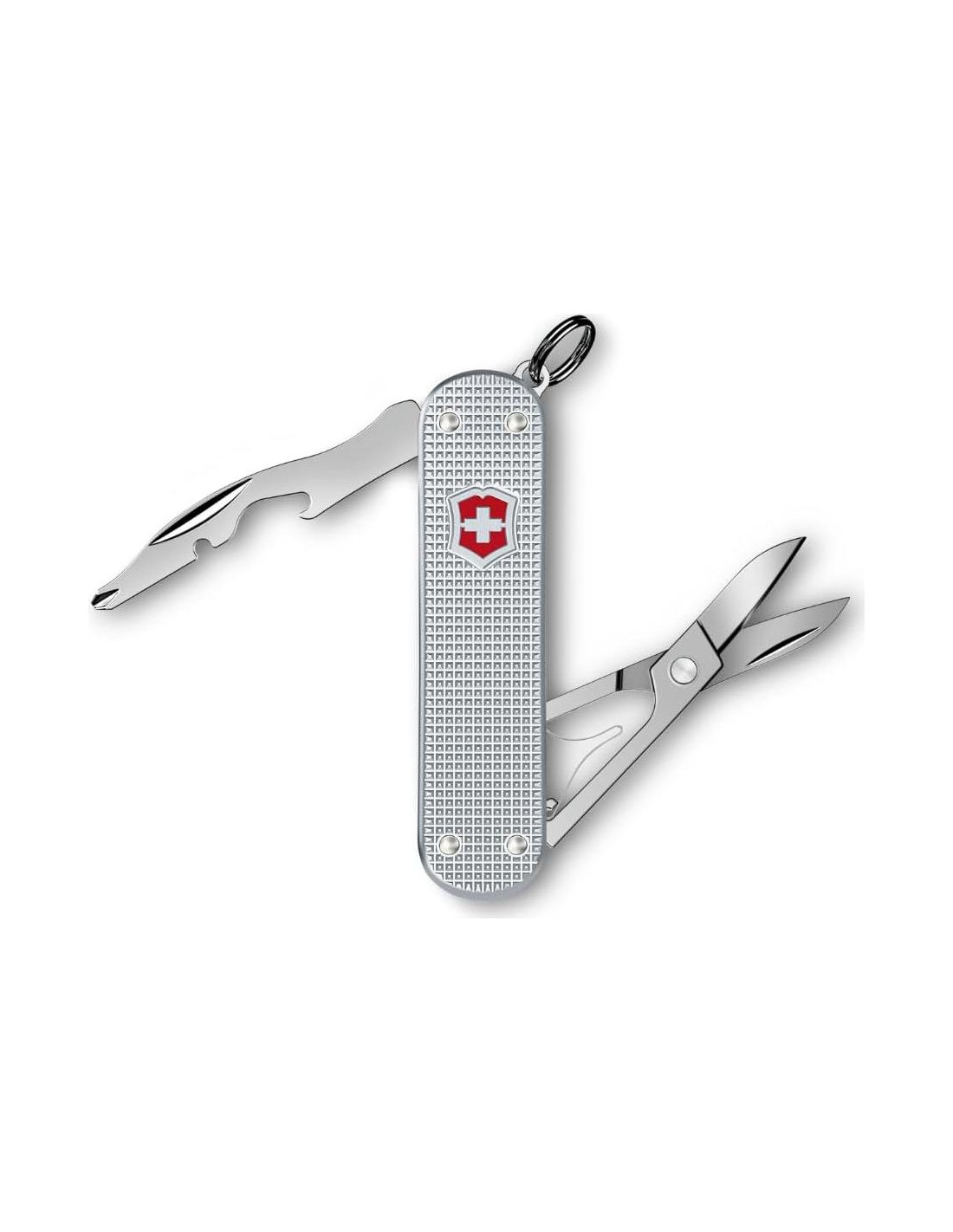 - Versátil y de alta calidad: ya sea para abrir, cortar o atornillar, la compacta herramienta multiusos combina funcionalidad precisa con un estilo icónico. Hecha en Suiza, impresiona con su máxima calidad.