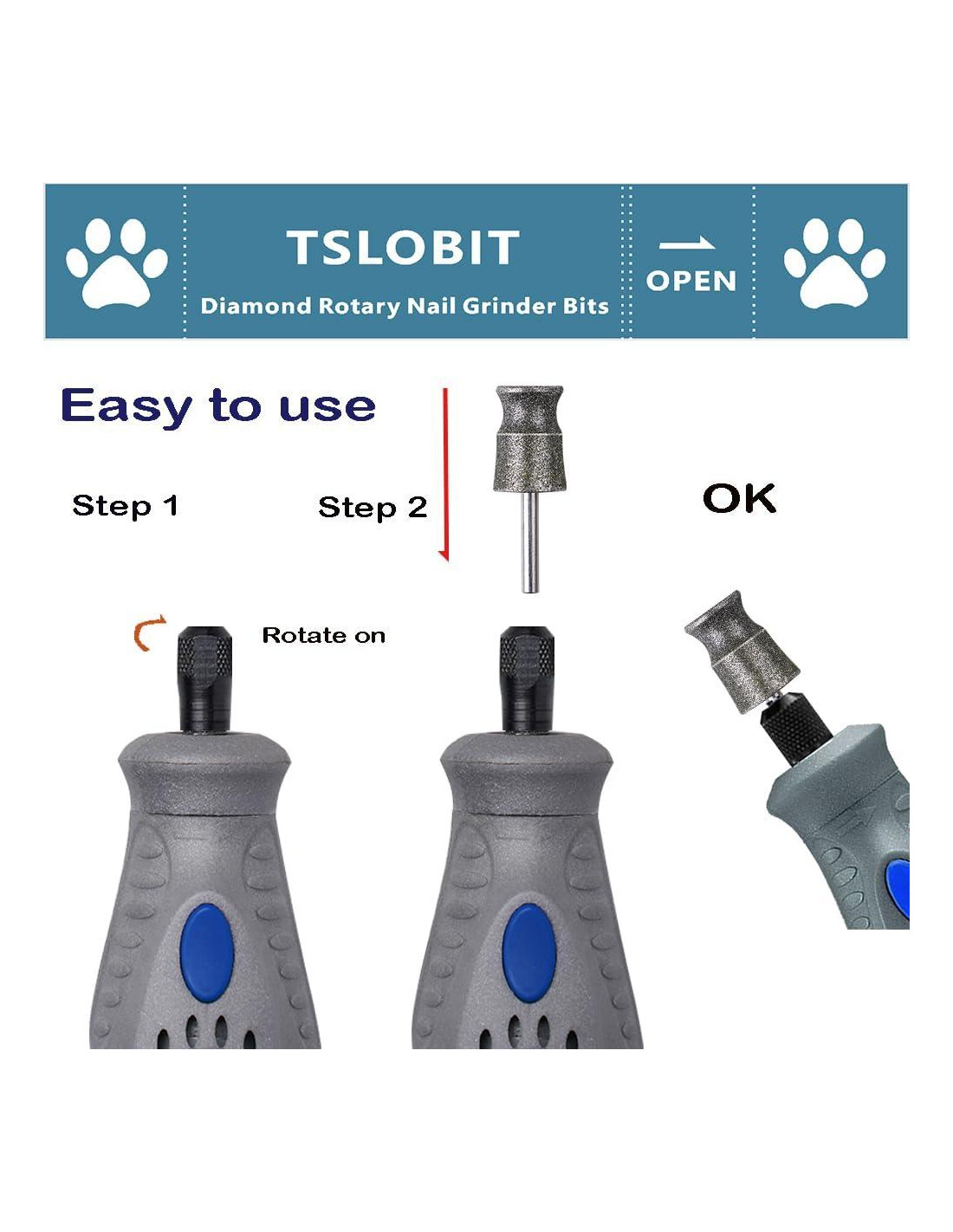 - Diseño original: Las brocas de amoladora de uñas de perro TSLOBIT hechas de diamante, que pueden ser cortadas, pulidas y tienen buena disipación de calor, fáciles de usar.