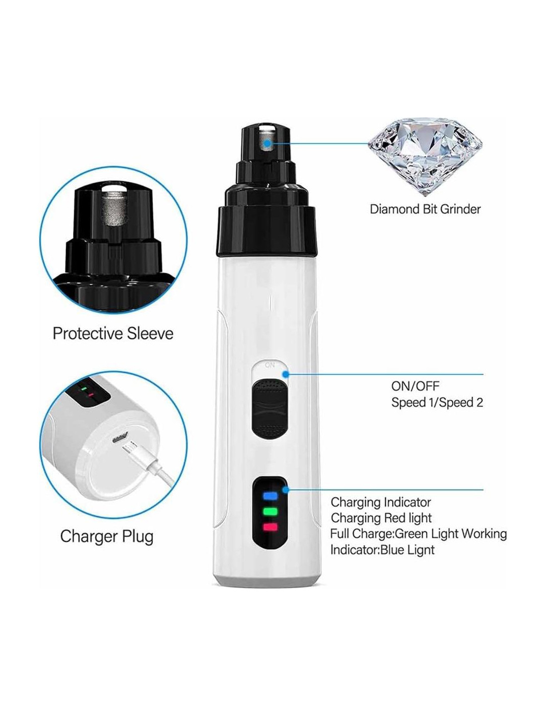 - Molienda Ajustable para Todos los Tamaños de Mascotas: Diseñado para adaptarse a una variedad de tamaños de mascotas y dureza de uñas, el Cortador de Uñas Silent Grind Pro incluye tres puertos de molienda de diferentes tamaños y un interruptor de dos velocidades. Esto permite un corte de uñas preciso adaptado a las necesidades específicas de cada mascota, desde gatos pequeños hasta perros grandes, asegurando un cuidado de uñas seguro y efectivo.