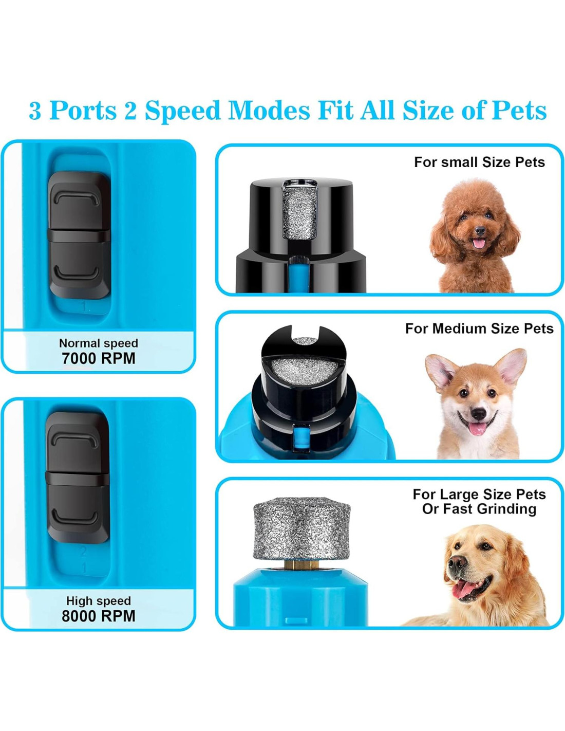 - [Ajuste para Mascotas de Cualquier Tamaño] Este dispositivo cuenta con 2 velocidades de rotación potentes y un diseño de 3 agujeros de molido, lo que lo hace adecuado para cualquier tamaño de uña de mascota y manteniendo la comodidad del perro bajo control. Elige un puerto y velocidad apropiados según el tamaño y dureza de la uña de tu mascota.