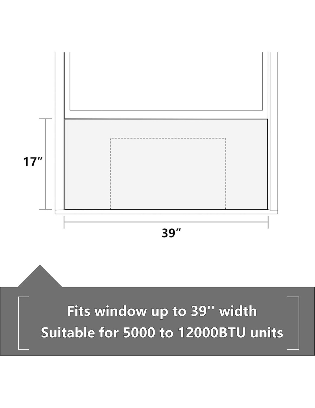 - AJUSTE UNIVERSAL: Se adapta a la mayoría de las unidades de aire acondicionado de ventana de 5000-12000 BTU. Adecuado para un ancho de marco de ventana de hasta 39 pulgadas (99.06 cm), fácil de cortar con tijeras normales, cinta nano de doble cara proporcionada para una instalación flexible y fácil.