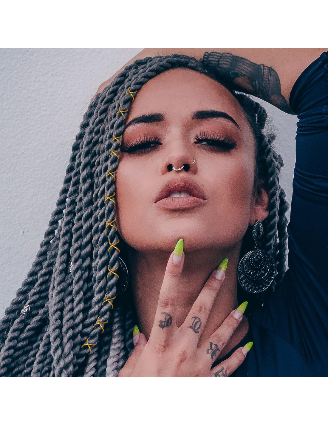 - FÁCIL DE USAR: Estas cuerdas de trenzado dreadlock trenzan fácilmente tu cabello en el estilo que desees. El rubio plateado es el color de vacaciones más popular y añadirá un toque de color a tu cabello. Trenza peinados geniales con estas gomas para destacar cuando estés bailando o en una fiesta.