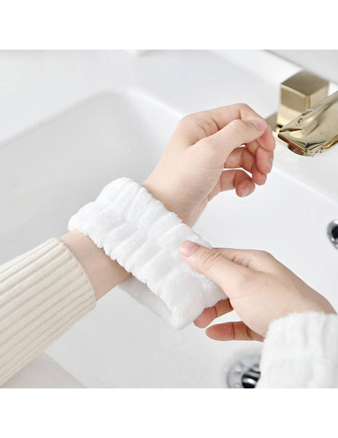 - Los conjuntos de bandas para la cabeza de spa ayudan a prevenir que el cabello caiga frente a tu cara y proporcionan una barrera para mantener tu cabello seco mientras lavas tu cara. Nuestras muñequera de toalla previenen que los líquidos se esparzan por tus brazos, brindándote un disfrute cómodo.