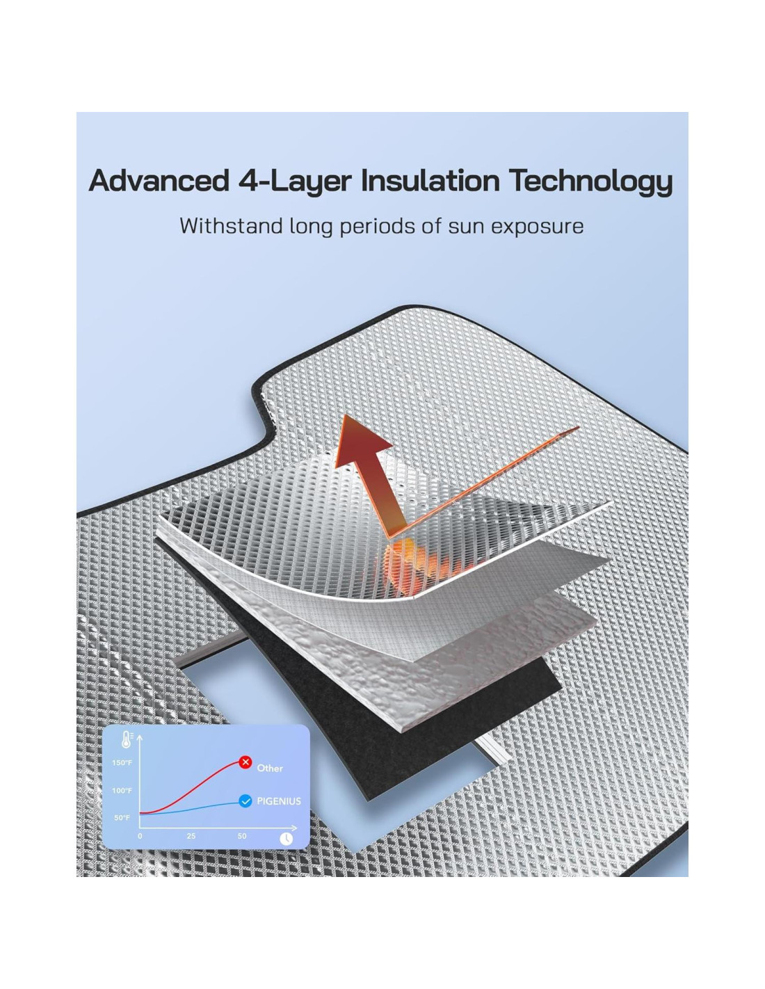 - Material de Aislamiento de 4 Capas: Con una Capa Reflectante Plateada que bloquea los rayos UV, una Capa de Absorción de Calor que regula el exceso de calor, una Capa de Enfriamiento para un enfriamiento rápido y una disipación eficiente del calor, y una Capa de Aislamiento que previene la entrada de calor externo.
