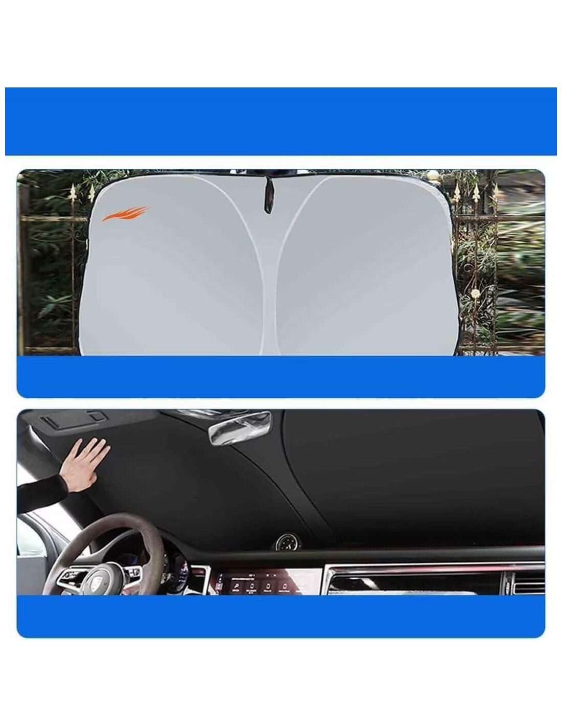 - Material: La cubierta para el parasol del parabrisas está hecha de material de poliéster de alta calidad, con un lado frontal reflectante plateado para bloquear los rayos UV. El lado oscuro es aislante del calor, asegurando así una temperatura agradable dentro del automóvil.