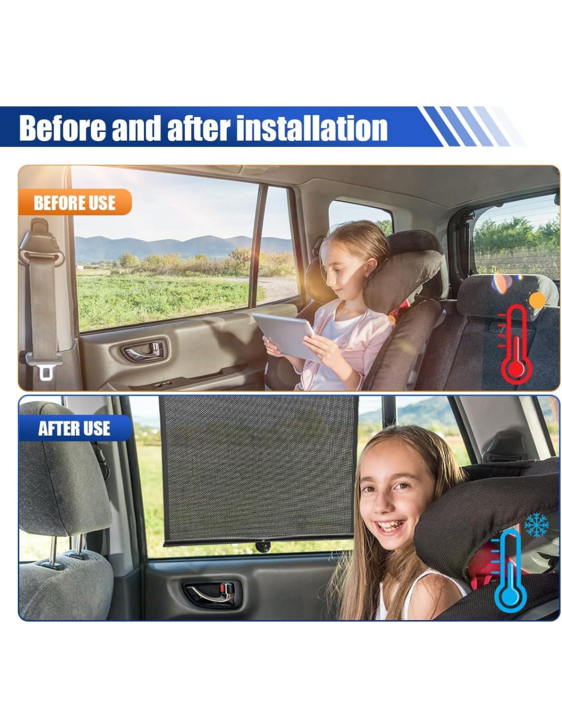 - [Fácil Instalación] : La instalación del cortinaje del protector solar para la ventana trasera es rápida y sin complicaciones: solo limpia y seca la superficie de la ventana, sujeta la ventosa de manera segura y cuelga el protector solar en su lugar. No se requieren herramientas o pasos complicados, lo que facilita la configuración y la eliminación según sea necesario.