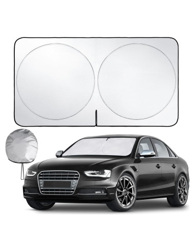 - Material de Alta Calidad - Nuestro protector solar para parabrisas es un protector de pantalla de alta calidad y duradero. Utiliza material de tela recubierta de plata premium, que puede bloquear el 98% de los dañinos rayos ultravioleta y el calor, y mantener la temperatura interna de su coche en un nivel cómodo.