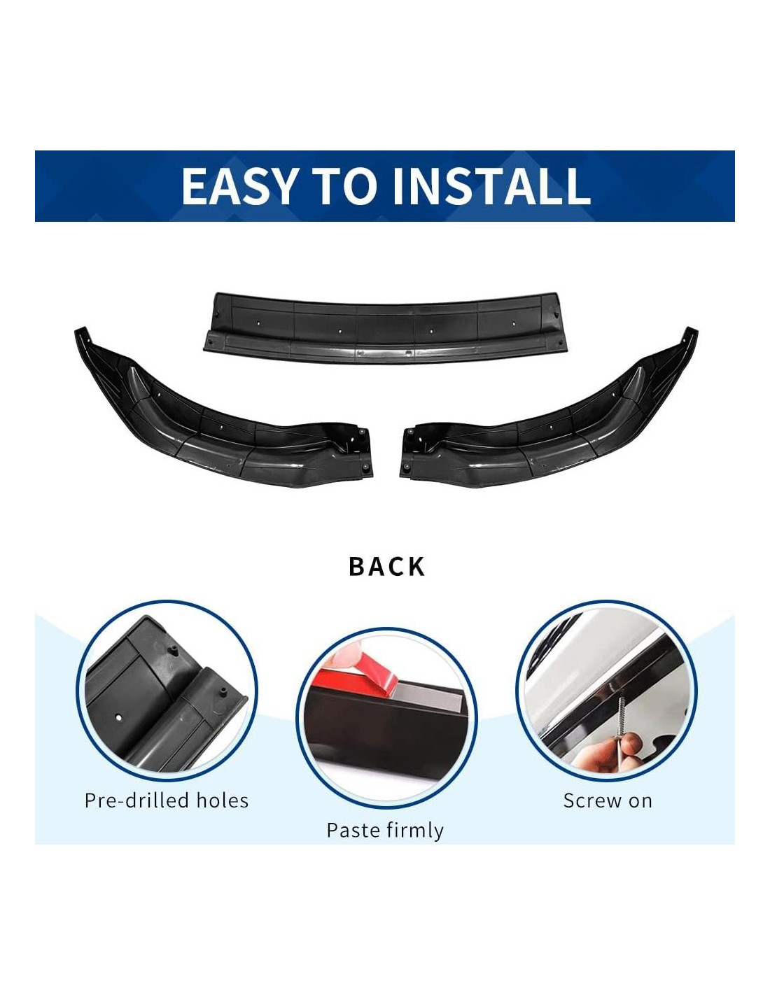 - Instalación Atornillada: ¡No es necesario realizar modificaciones complicadas! Eleva instantáneamente la apariencia de tu automóvil con nuestro elegante labio frontal. Haz una declaración en la carretera con esta actualización estilosa.