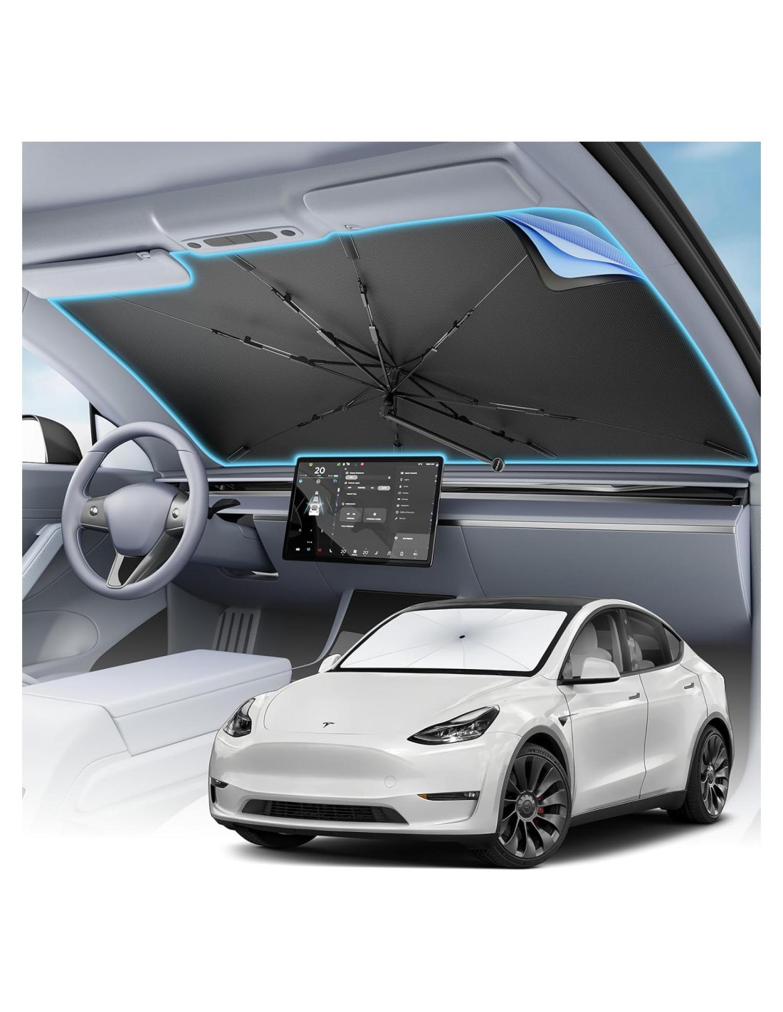 - Diseño Almacenable - El protector solar para parabrisas viene con una bolsa de almacenamiento, lo que facilita guardar bien el protector solar en la guantera o el maletero cuando no está en uso para evitar desorden. Es un gran accesorio para coches.