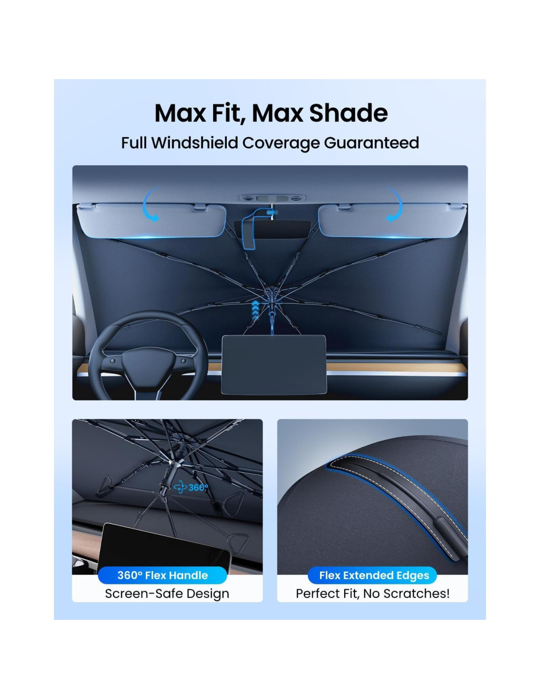 - [Borde Flexible, Ajuste Perfecto] El borde flexible de 10cm recién mejorado se adapta perfectamente a tu parabrisas, asegurando una cobertura completa sin huecos, mientras proporciona un ajuste seguro que no dañará el vidrio de tu coche.