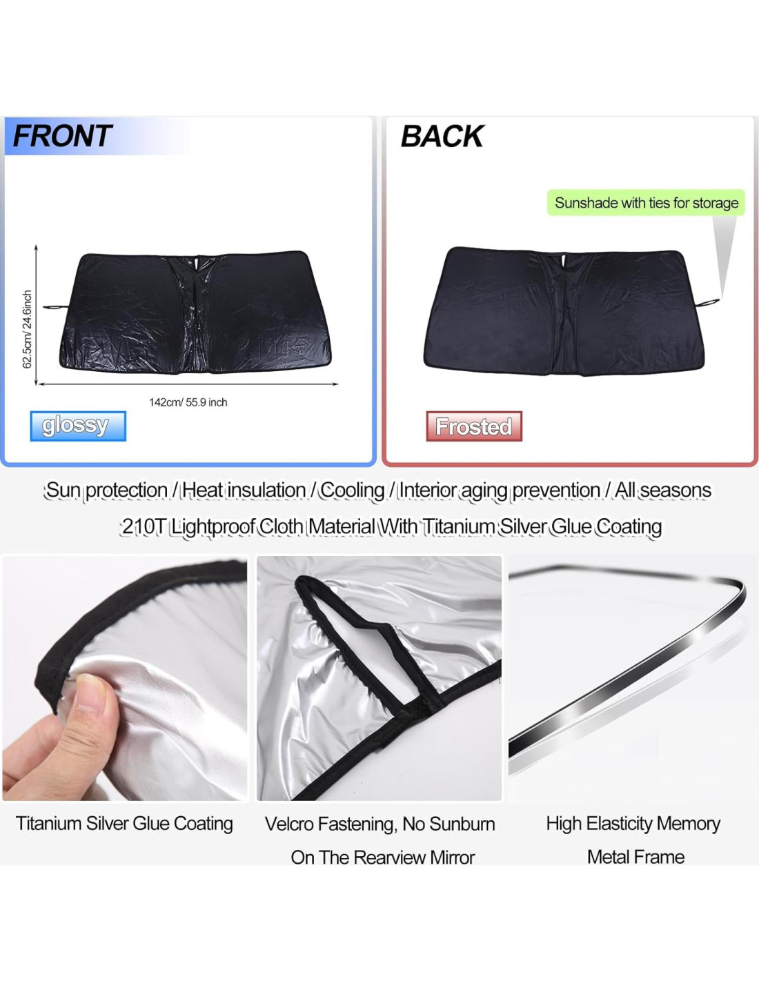 - Mejora de Material: El Protector Térmico de Ventana del Auto está construido con un compuesto de poliéster recubierto de pegamento de titanio de alta calidad para garantizar la máxima resistencia y durabilidad para un uso prolongado. Incluso los climas veraniegos intensos no afectarán estas sombras. No se deshilacharán en los bordes ni se desvanecerán en color.
