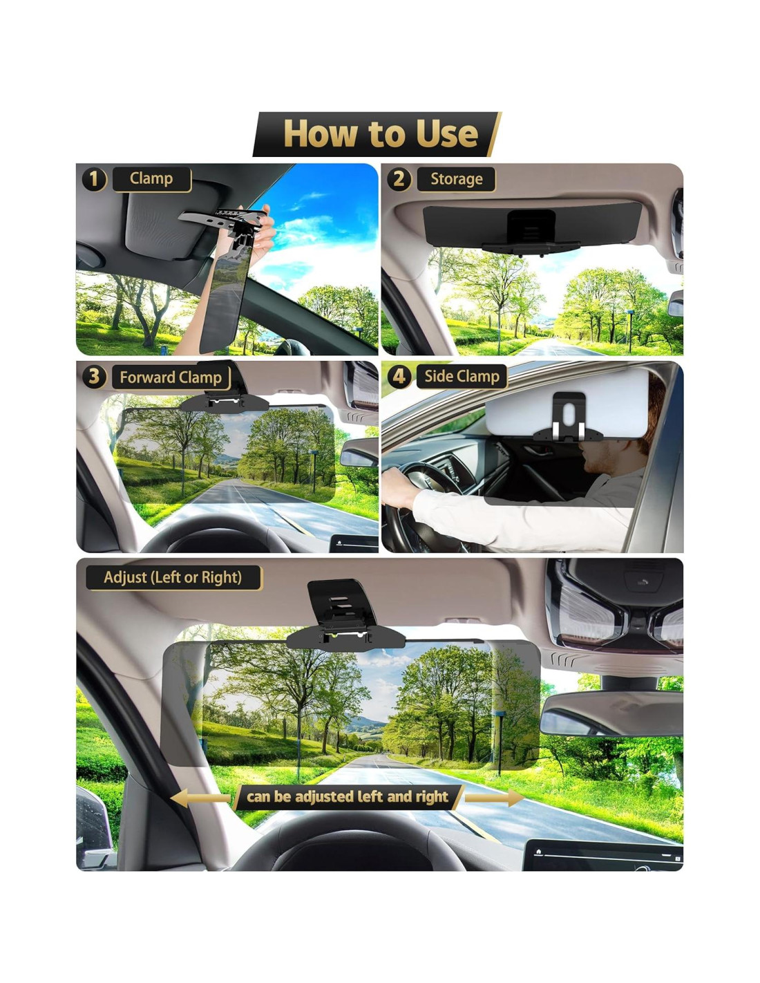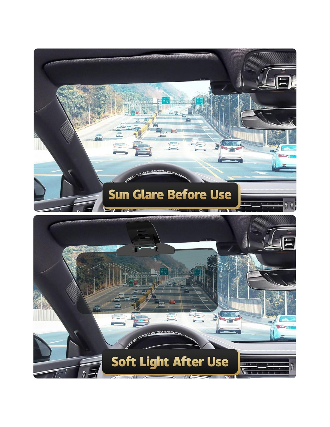 - [Seguridad Mejorada en la Conducción] Al reducir el deslumbramiento y mejorar la visibilidad, la visera solar para coche ayuda a los conductores a mantenerse enfocados en la carretera, reduciendo el riesgo de accidentes