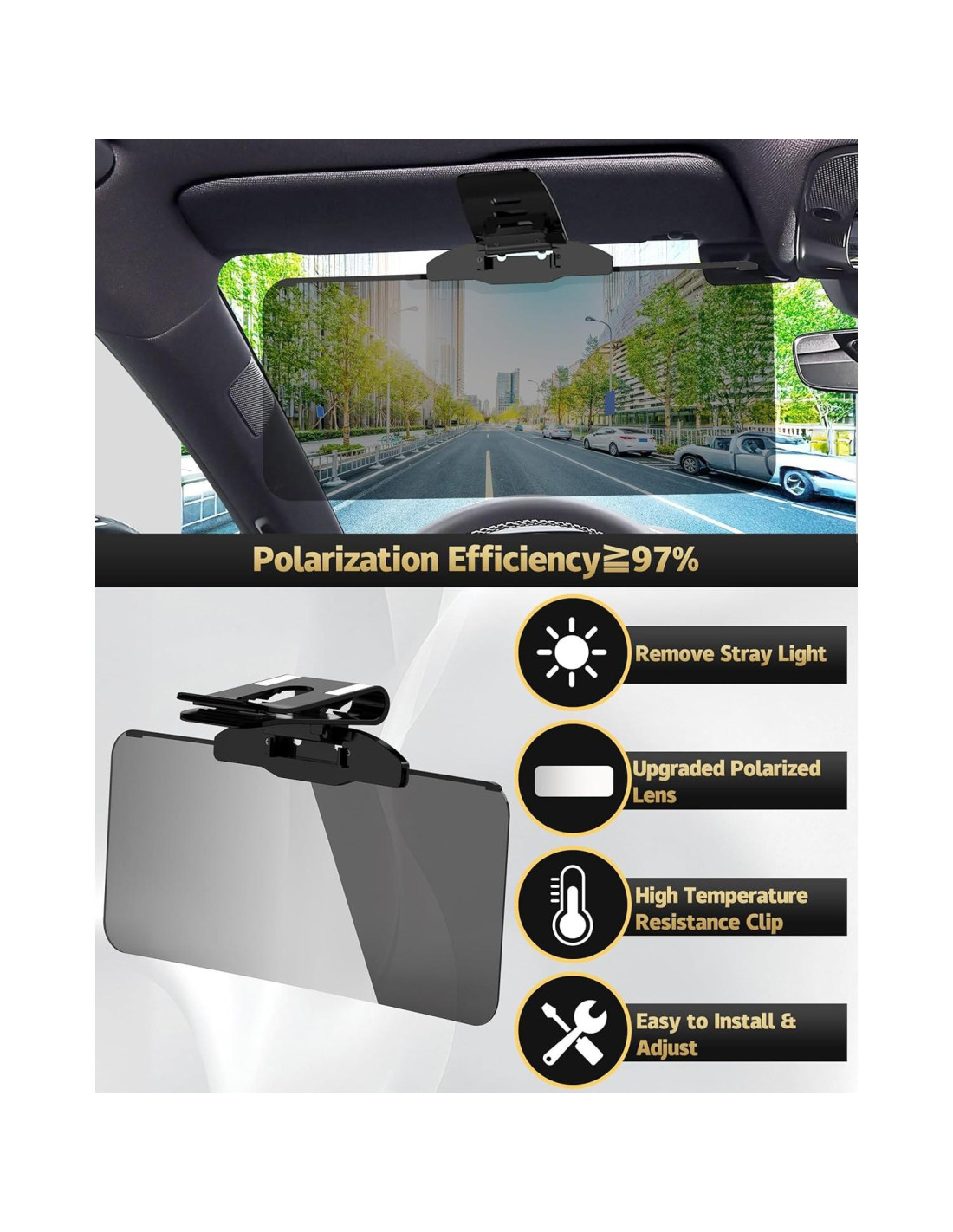 - [Fácil de Instalar] El accesorio del extensor de visera para coche está diseñado para una instalación rápida y fácil, sin necesidad de herramientas. Nota: el clip y la lente están sujetos firmemente para evitar que la lente se caiga cuando no está en uso