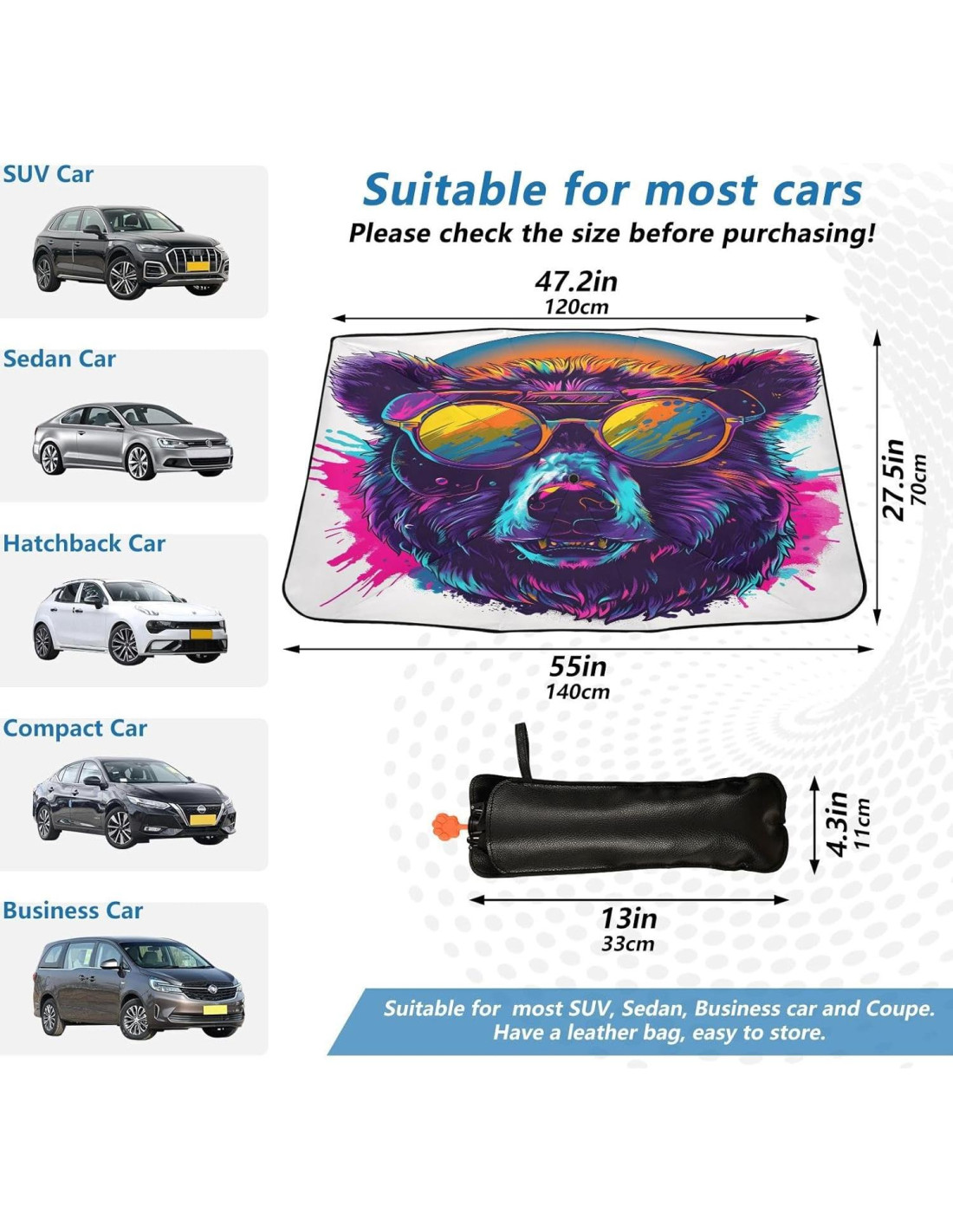 - [Tamaño Universal] : El tamaño de la sombrilla para parabrisas de coche es 140 cm x 70 cm (55"X27.5"), se adapta perfectamente a la mayoría de coches compactos, sedanes, SUV, coches de negocios, coches compactos y coupés. Perfectamente con las sombras de ventana del coche sin ningún espacio, no tienes que preocuparte por problemas de tamaño.