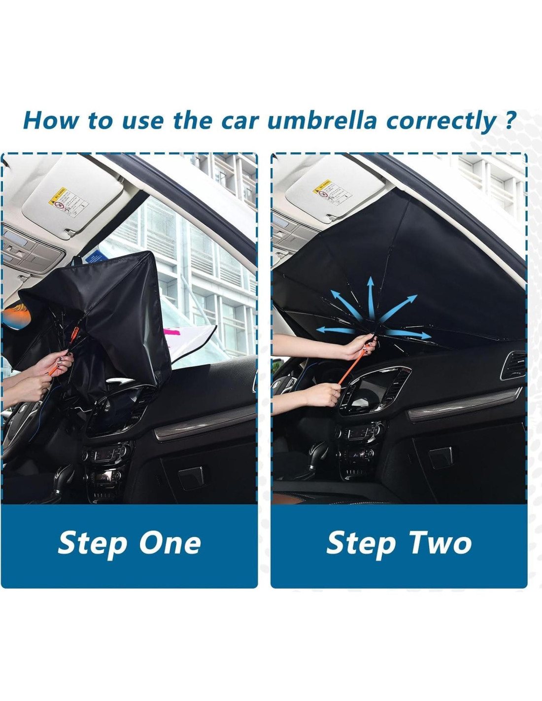 - [Fácil de Usar y Almacenar] : La sombrilla para parabrisas del coche es fácil de abrir y cerrar. El tamaño plegado es de 33 cm (13 pulgadas) de largo, igual que una sombrilla normal. Puedes guardarla en la bolsa de almacenamiento de cuero y colocarla en la puerta del coche o en la caja de almacenamiento central. Este visera para parabrisas de coche es conveniente para el uso diario y es el accesorio ideal para la sombra solar en coches en verano.