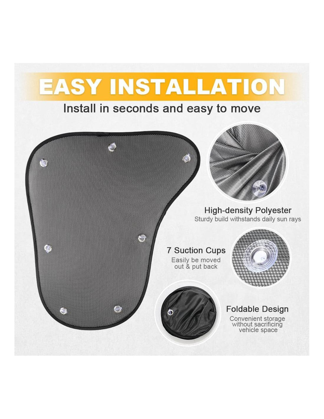 - SE INSTALA EN SEGUNDOS: La Cortina de Sombra para Ventanas Laterales tiene 7 ventosas resistentes en la parte posterior, se puede fijar a una ventana rápida y fácilmente, pero también se puede mover de lugar y, así de fácil, volver a colocar