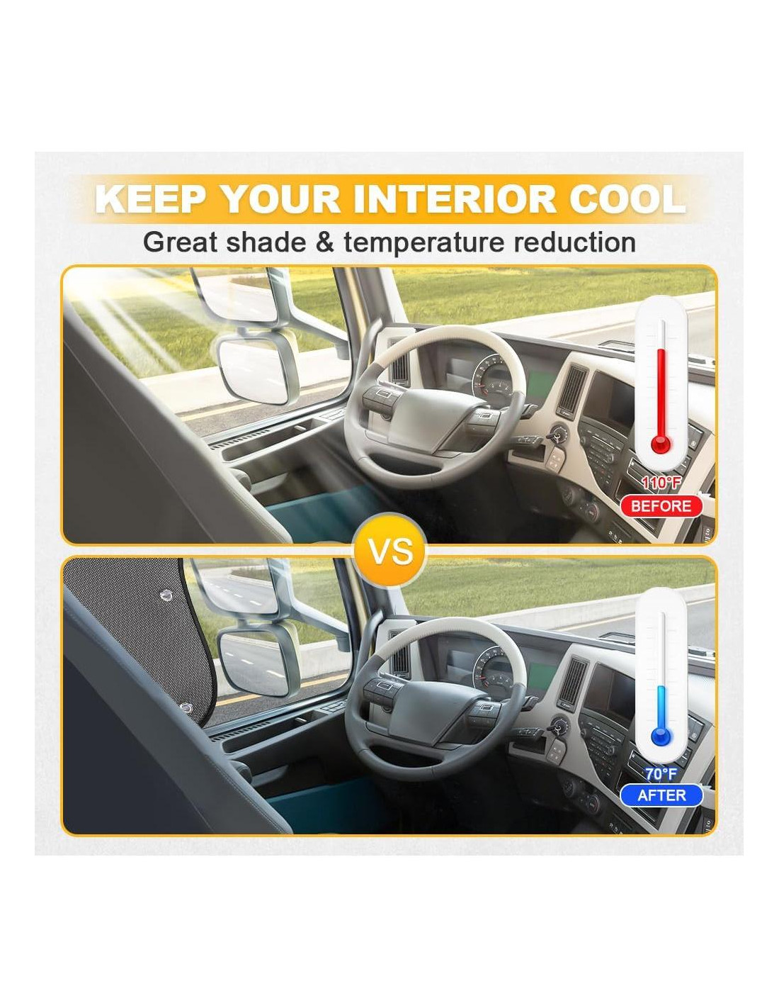 - MANTENIENDO LA VISTA: Nuestras formas de ventana están diseñadas para las ventanas de camiones y no bloquean los espejos retrovisores, se puede usar de manera segura mientras se conduce. Al conducir en el clima más caluroso, esta es una excelente manera de prevenir quemaduras solares, bloquea muy bien el sol y reduce la temperatura dentro del automóvil, y mejora tu experiencia en viajes largos