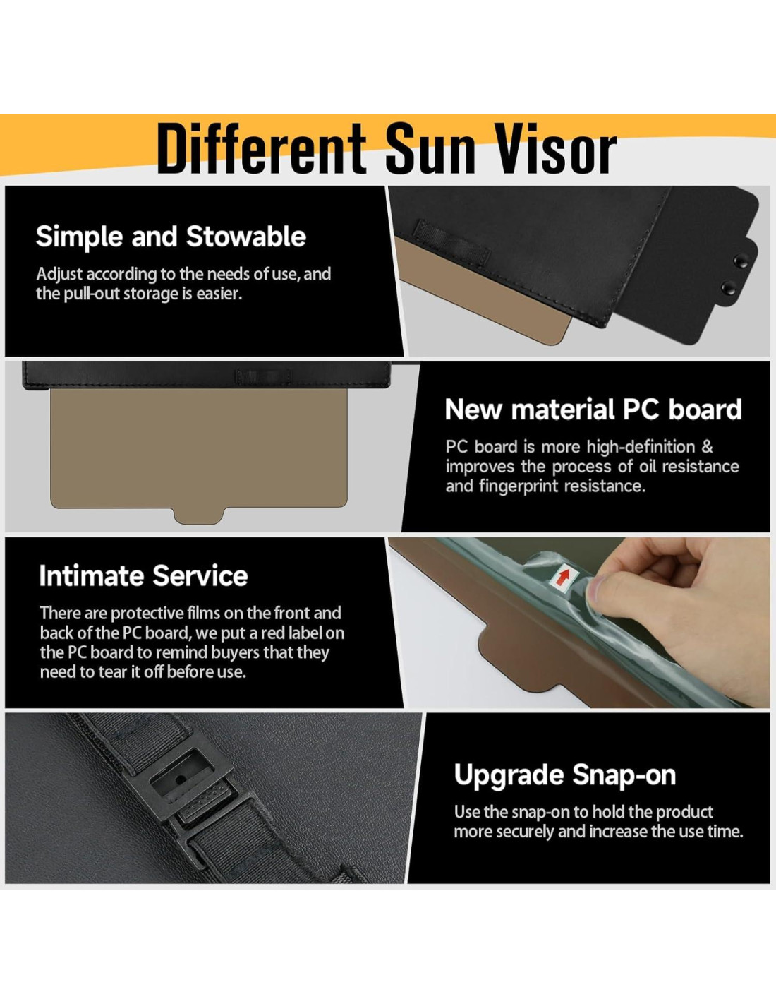 - [Conducción Segura] La visera de sol para coche reduce la fatiga visual, reduce el deslumbramiento, protege los ojos y resuelve de manera más efectiva los problemas ocultos de visión en entornos de conducción como luces altas y condiciones de lluvia, niebla y ceguera por nieve.