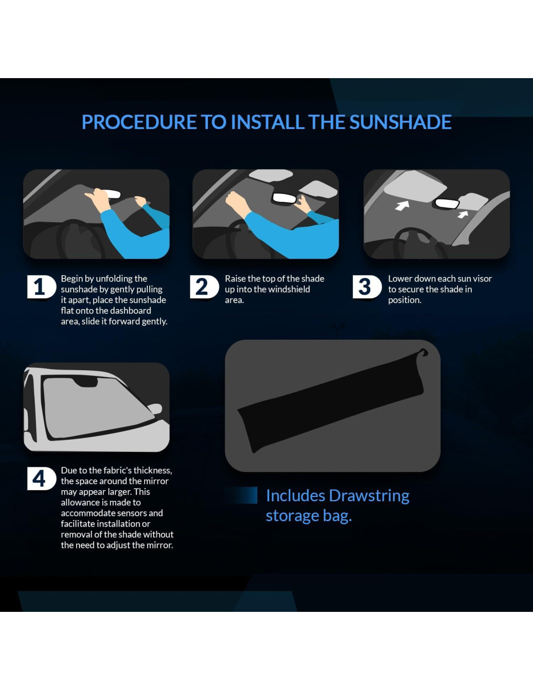 - [Fácil Instalación y Remoción] : Se despliega en segundos para un uso rápido y se pliega para un almacenamiento conveniente en el maletero o en la guantera. No se requieren herramientas ni ensamblaje. Esenciales imprescindibles accesorios de auto protector solar.