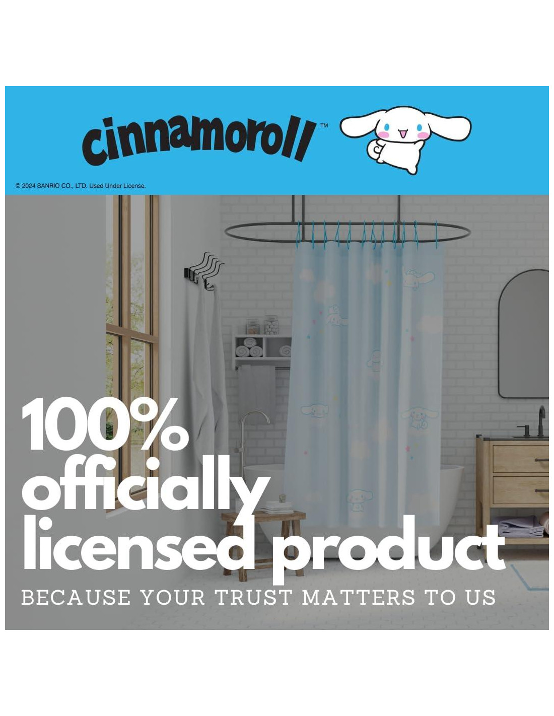 - DISEÑO CINNAMOROLL: Emprende una aventura de ensueño con nuestra Cortina de Ducha Cinnamoroll. Este encantador diseño presenta a Cinnamoroll flotando entre suaves nubes, con estrellas coloridas que añaden un toque juguetón. Perfecta para los fans del dulce cachorro, esta cortina de ducha aporta una explosión de ternura y fantasía a tu baño, transformándolo en un paraíso lleno de nubes.