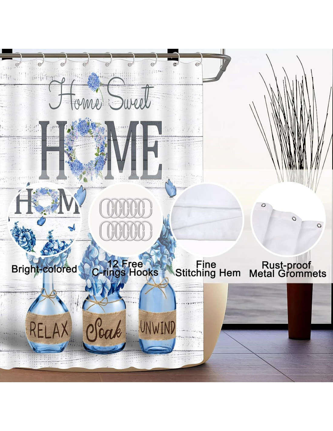 - Fácil de instalar: El diseño de 12 ganchos simples permite instalar fácilmente nuestro conjunto de cortina de baño. En unos minutos, te ayudará a disfrutar de un agradable tiempo de baño. Se puede lavar a mano o a máquina en agua fría, colgar para secar. Es una excelente opción para uso frecuente y hogares ocupados.