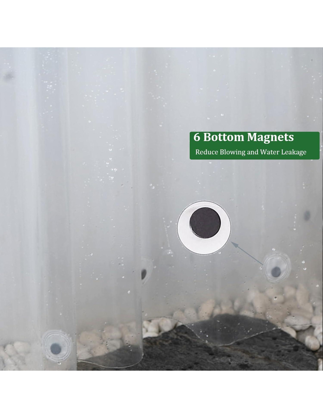 - [Ligera con 6 Imánes Fuertes] El grosor es de 4G, es ligera con 6 imanes grandes pesados en la parte inferior de la cortina de ducha que pueden estabilizar efectivamente la cortina de ducha y prevenir que se adhiera al cuerpo al bañarse.