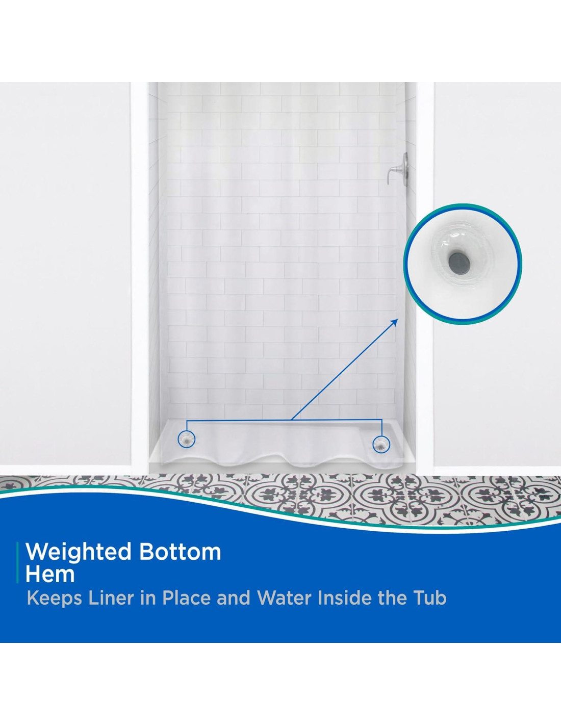 - Descripción del forro: El forro está hecho de 100% PEVA, un material ligero e impermeable, con un dobladillo inferior con peso para estabilidad.