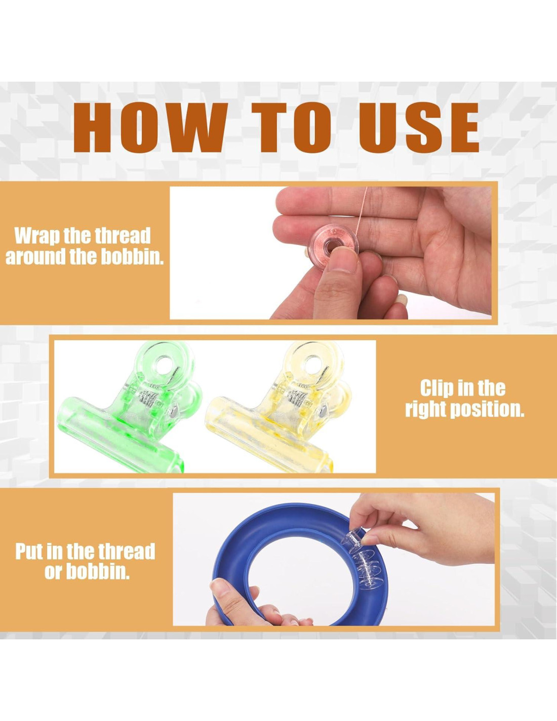 - [Información del Paquete] Recibirás 4pcs de soporte de bobina redonda en 4 colores (azul oscuro, rojo rosa, verde claro, púrpura), 50pcs de bobinas transparentes y 30pcs de clips de coser, un total de 84 Piezas.