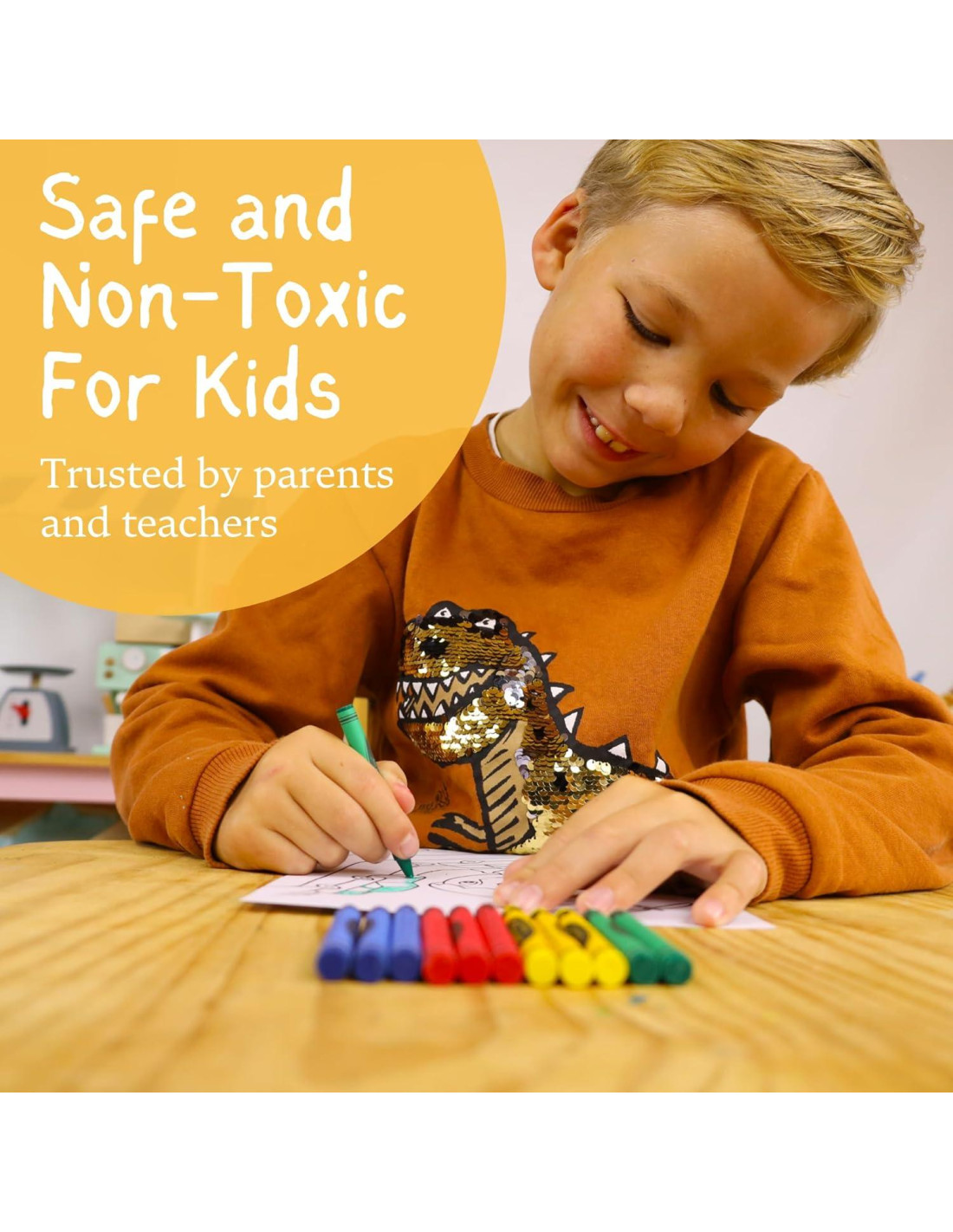 - Hechos de cera de parafina duradera, estos crayones resisten romperse, ofreciendo sesiones de coloreado suaves y vibrantes una y otra vez. Cada crayón tiene el tamaño justo para manos pequeñas con 7.94 cm de largo.