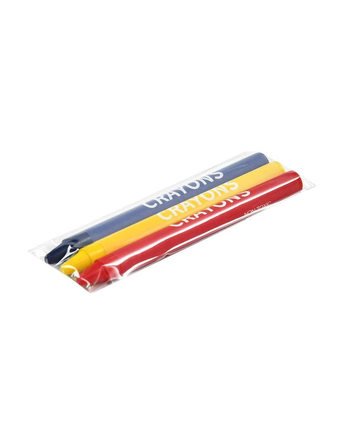 - 3 colores: crayones rojo, azul y amarillo en celofán individual.