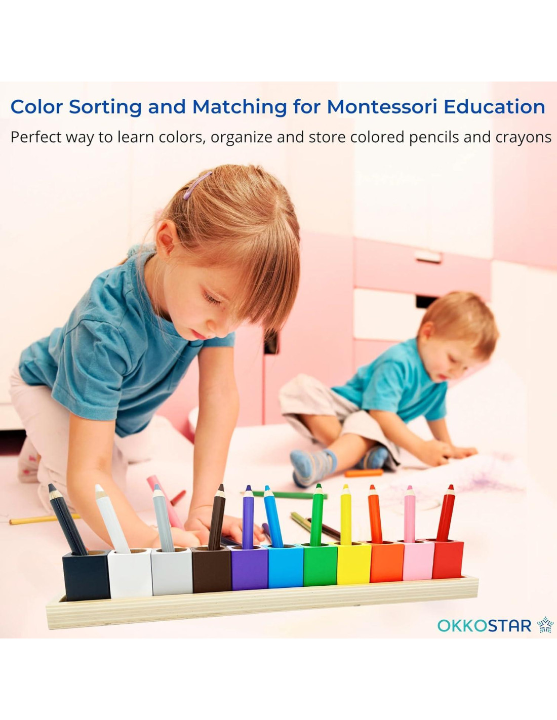 - MONTESSORI APRENDIZAJE 11 soportes de colores brillantes para clasificar, emparejar y almacenar fácilmente lápices de colores y crayones. Mantén tu escritorio ordenado y organizado. ¡No más desorden después de las actividades artísticas!