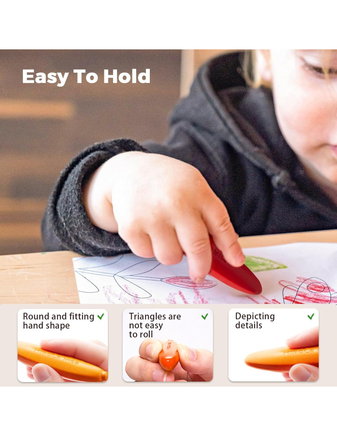 - [Crayones Irrompibles] Los niños pequeños a menudo utilizan una fuerza considerable al dibujar. Estos crayones están diseñados con materiales que garantizan una durabilidad a largo plazo. Incluso con caídas frecuentes o uso intensivo, permanecen intactos y resistentes a daños o roturas, extendiendo su vida útil.