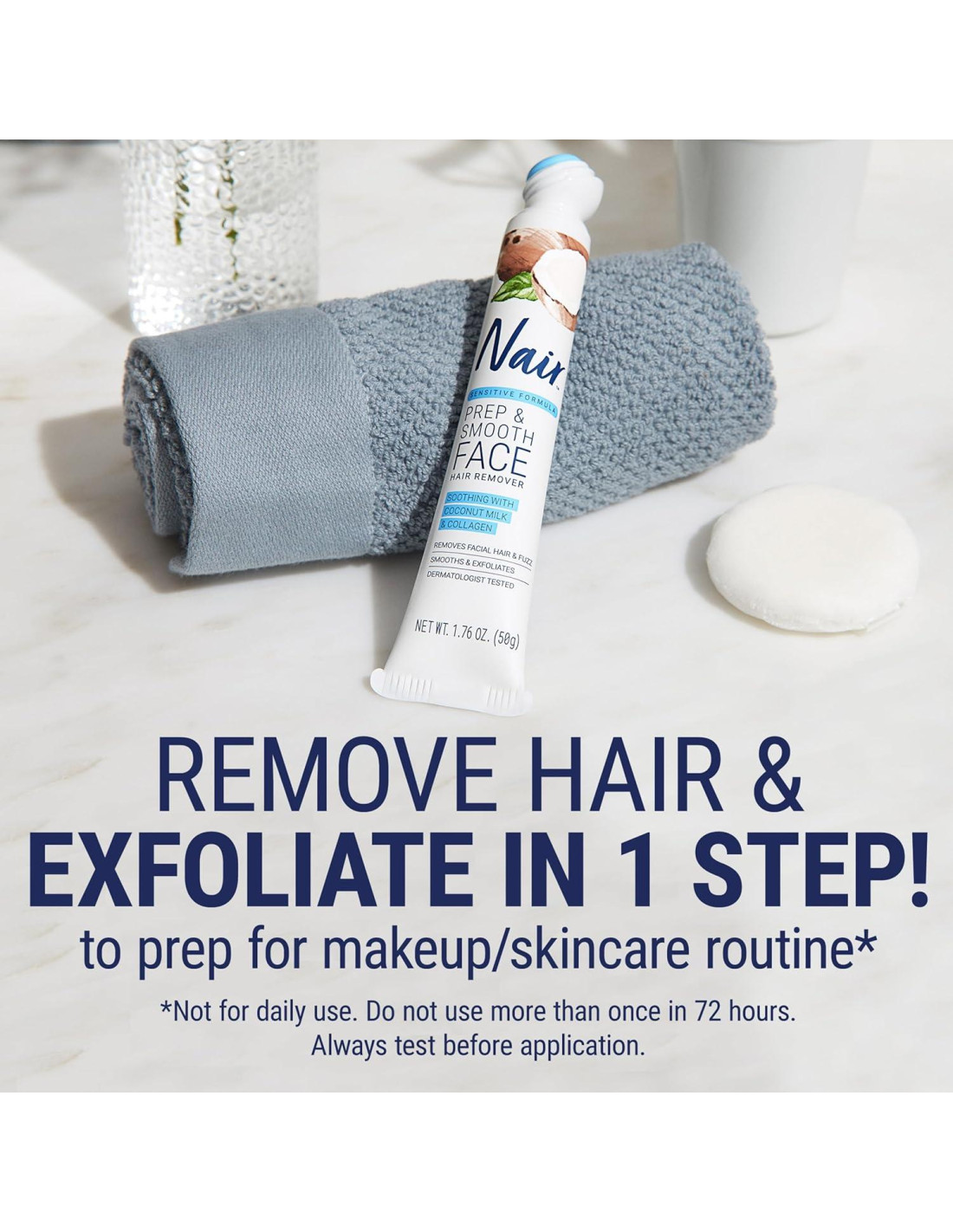 - Removedor de vello facial Nair Prep & Smooth para mujeres infundido con leche de coco hidratante y colágeno para piel sensible