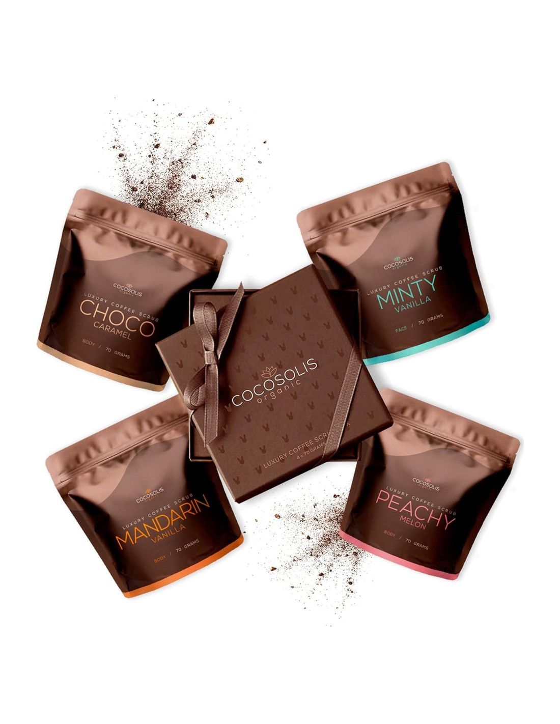 - SET DE EXFOLIANTES PARA CUERPO Y CARA (4 PAQUETES): Nuestro set de exfoliantes incluye 3 x exfoliante para el cuerpo (CHOCO CARAMEL, MANDARINA VAINILLA y MELÓN DULCE) y 1 x exfoliante para la cara (VANILLA MINT). Usa de 1 a 3 veces por semana para suavizar tu piel. Relájate y revitaliza tus sentidos.