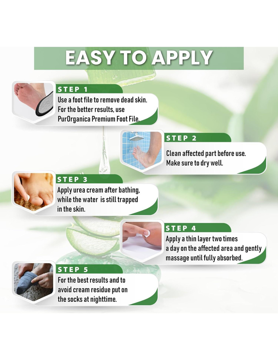 - EL TRATAMIENTO QUE TUS PIES MERECEN: Zapatos incómodos, una vida ajetreada, deportes, tus pies tienen que soportar mucho cada día y es natural que tus talones terminen agrietados y secos. ¡Con la crema para pies Urea 40% de PurSources puedes tener los pies suaves de tus sueños de la manera más fácil y rápida posible! ¡La increíble fórmula de la crema hidratará y suavizará profundamente tus pies para resultados fenomenales!