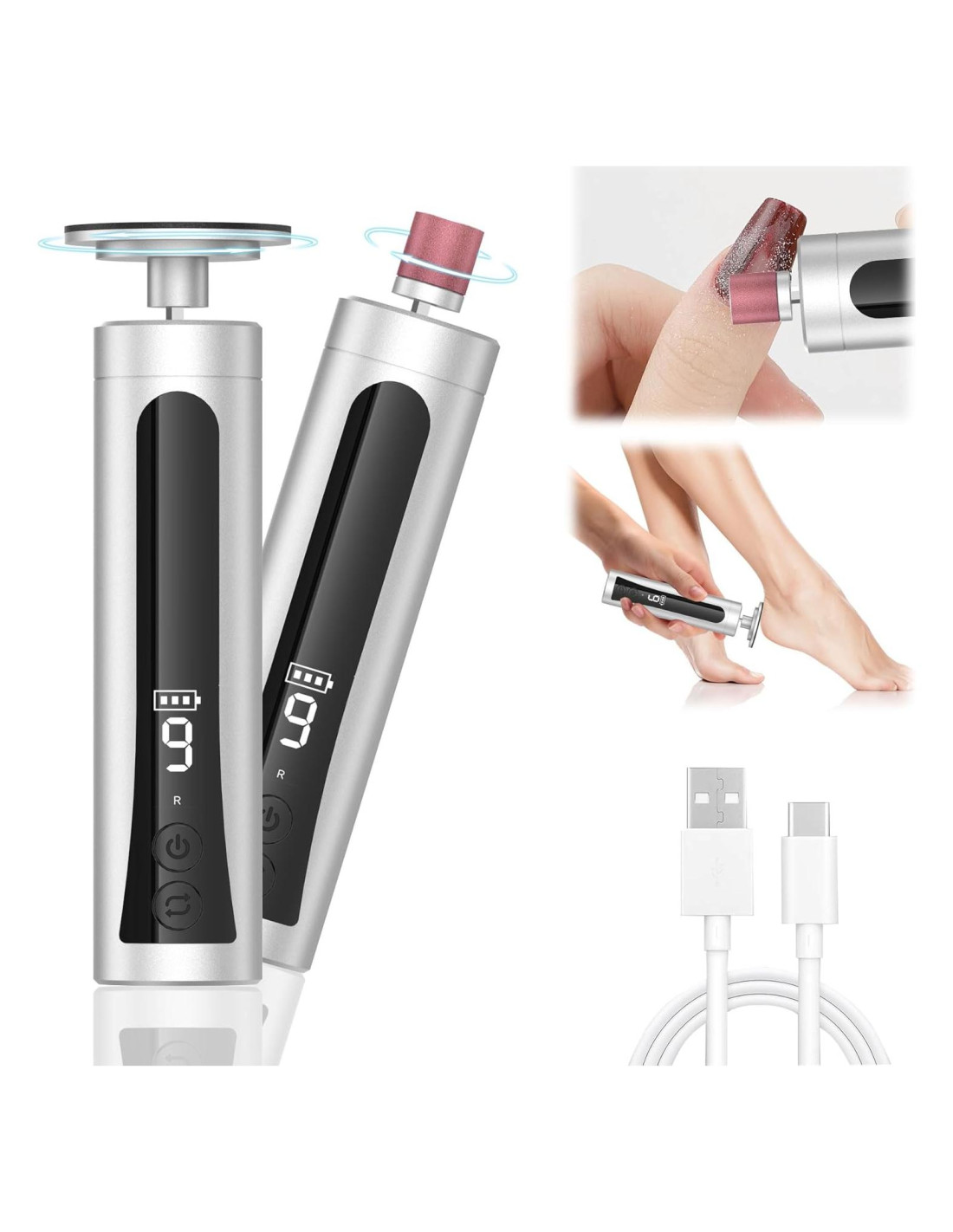 - Recargable con Batería de Gran Capacidad: Batería de alta capacidad de 1200mAh incorporada, la herramienta eléctrica removedor de callos para pies se puede usar de forma inalámbrica durante 90 minutos después de una carga completa, con cable de carga USB-C, carga más conveniente.
