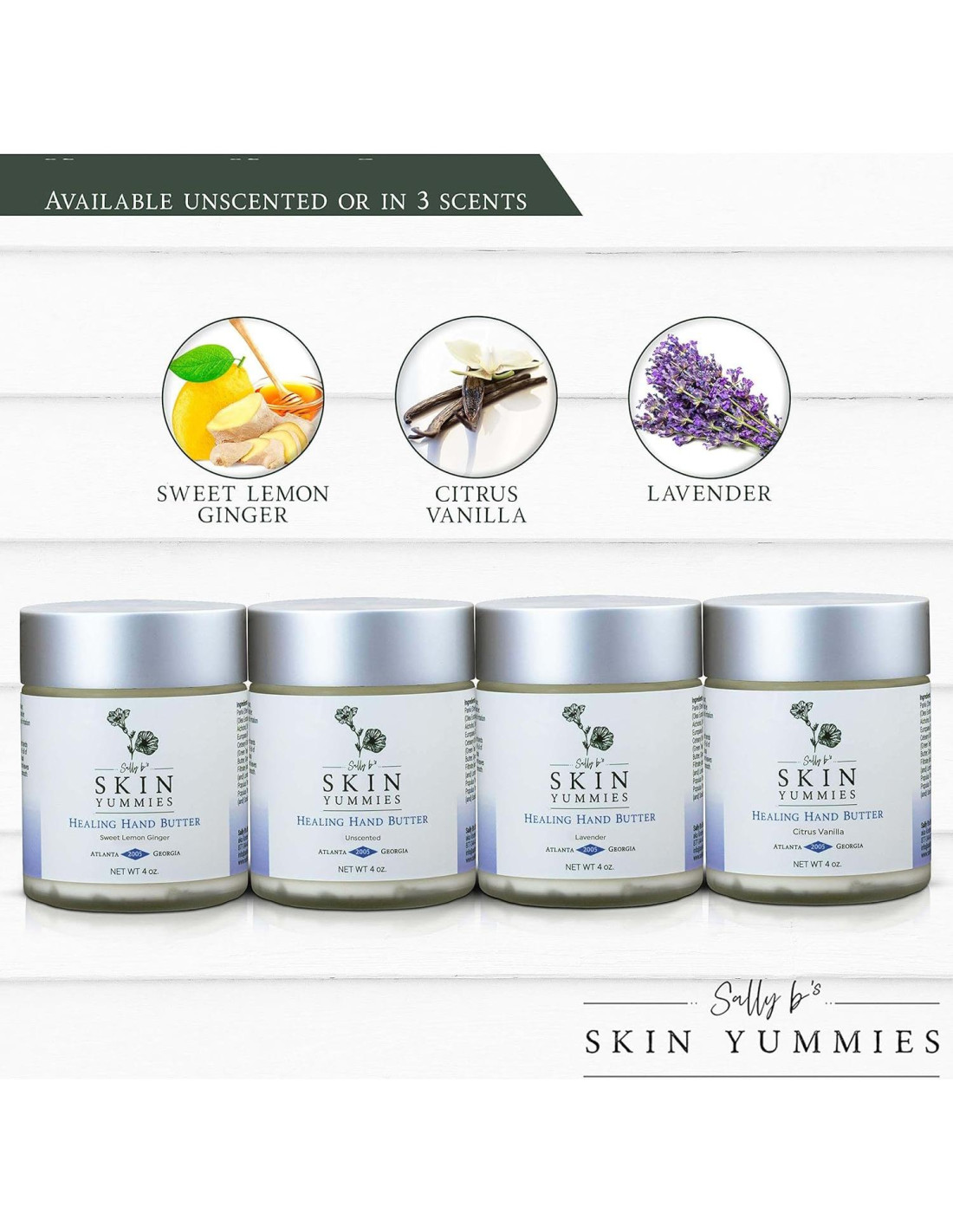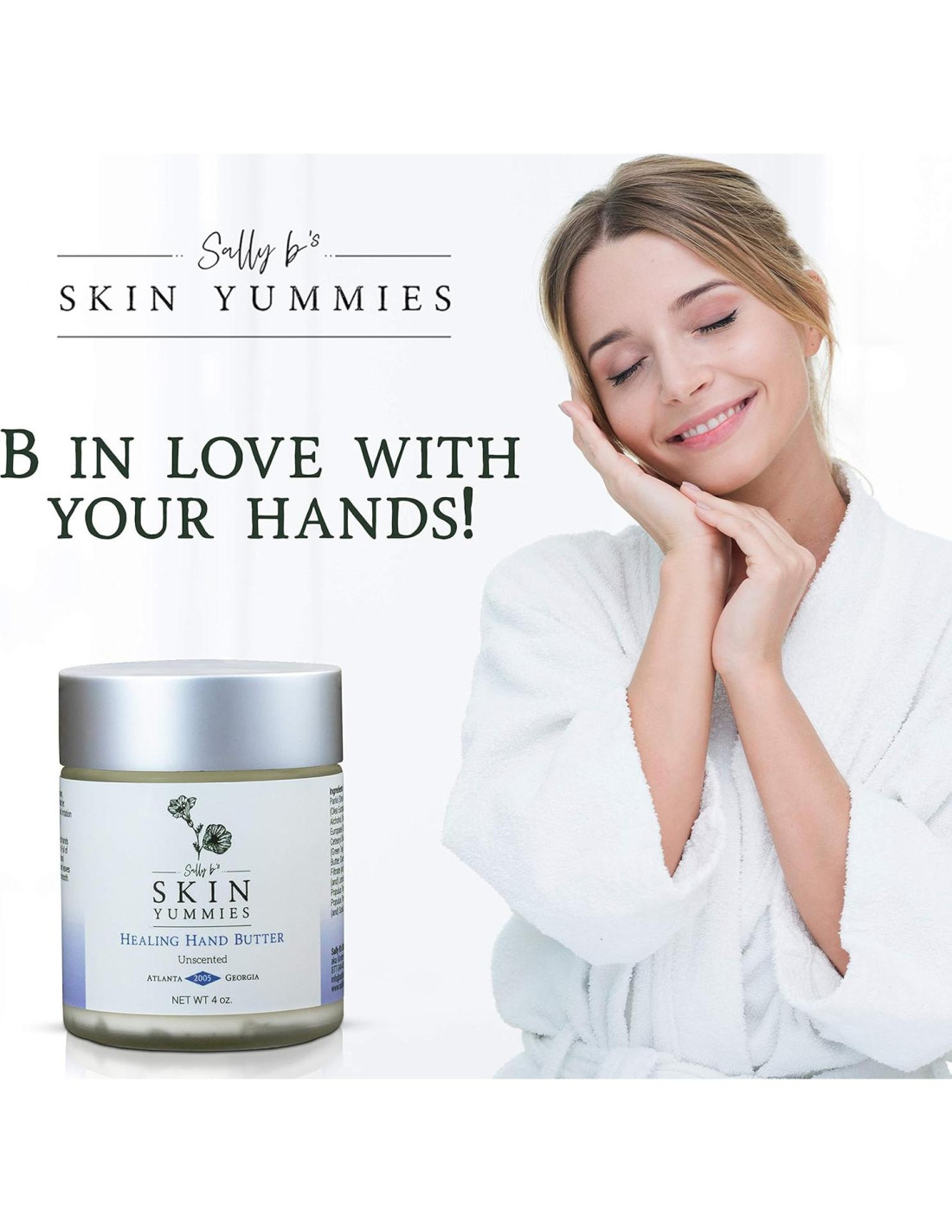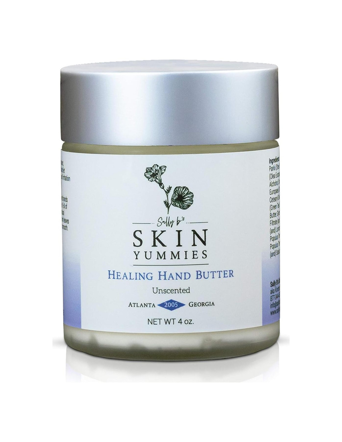 Alivia las manos secas, agrietadas y cansadas con la Mantequilla Sanadora de Manos de Sally B. Llena de aceites orgánicos, mantecas ricas y botánicos naturales, nuestra Mantequilla Sanadora de Manos deja tus manos rejuvenecidas, suaves y lisas.