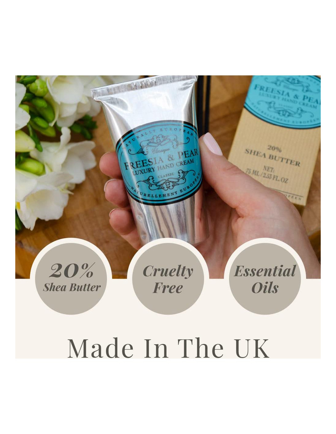 - Una vez que pruebes la Crema de Manos Naturally European, estamos seguros de que estarás de acuerdo en que es la mejor crema de manos para calmar manos secas. Con 20% de manteca de karité, la Crema de Manos de Lujo Naturally European proporciona un cuidado de la piel excepcional a una fracción del costo de otras cremas de manos en el mercado.