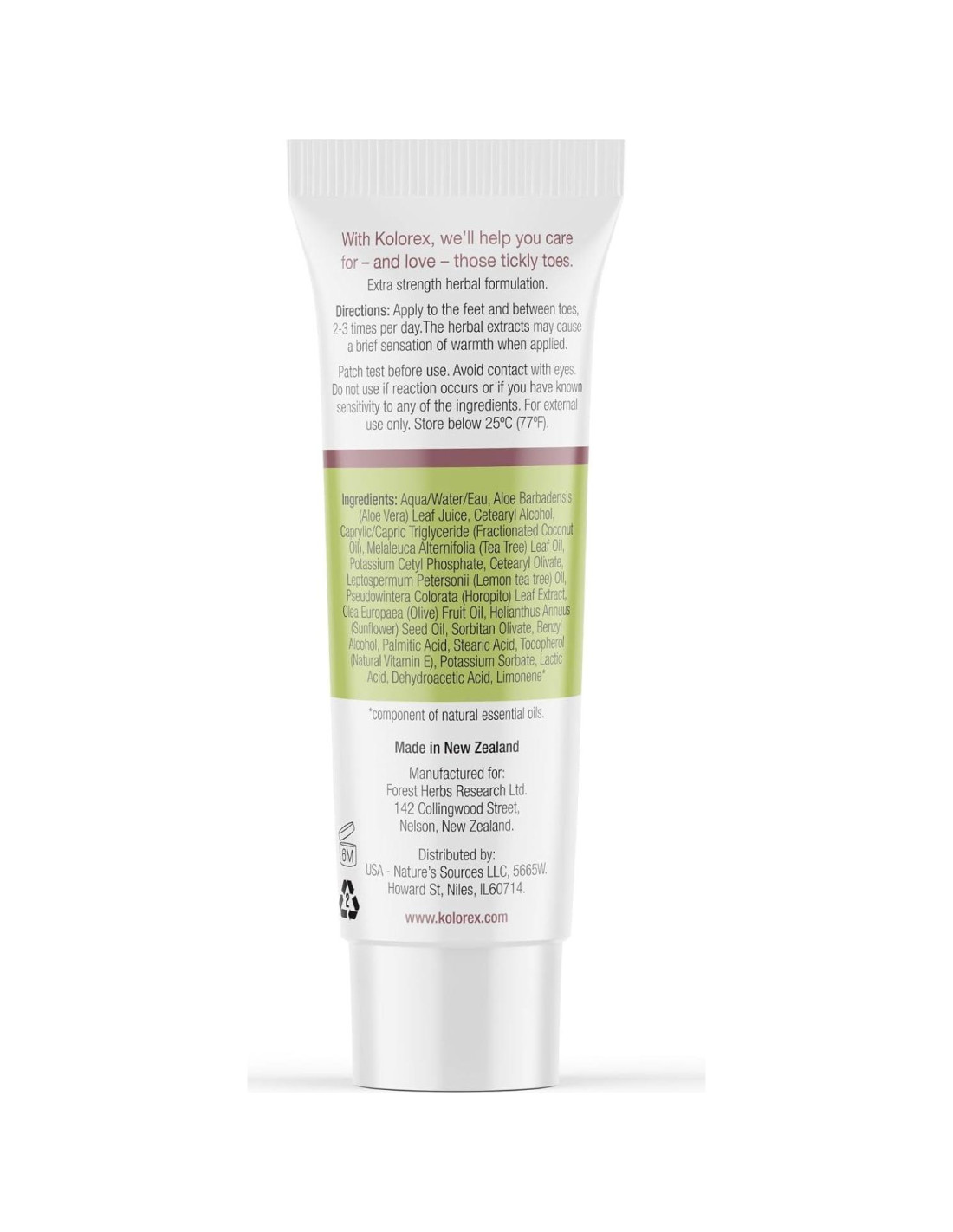 - La crema para pies y dedos Kolorex está libre de: Fragancias sintéticas