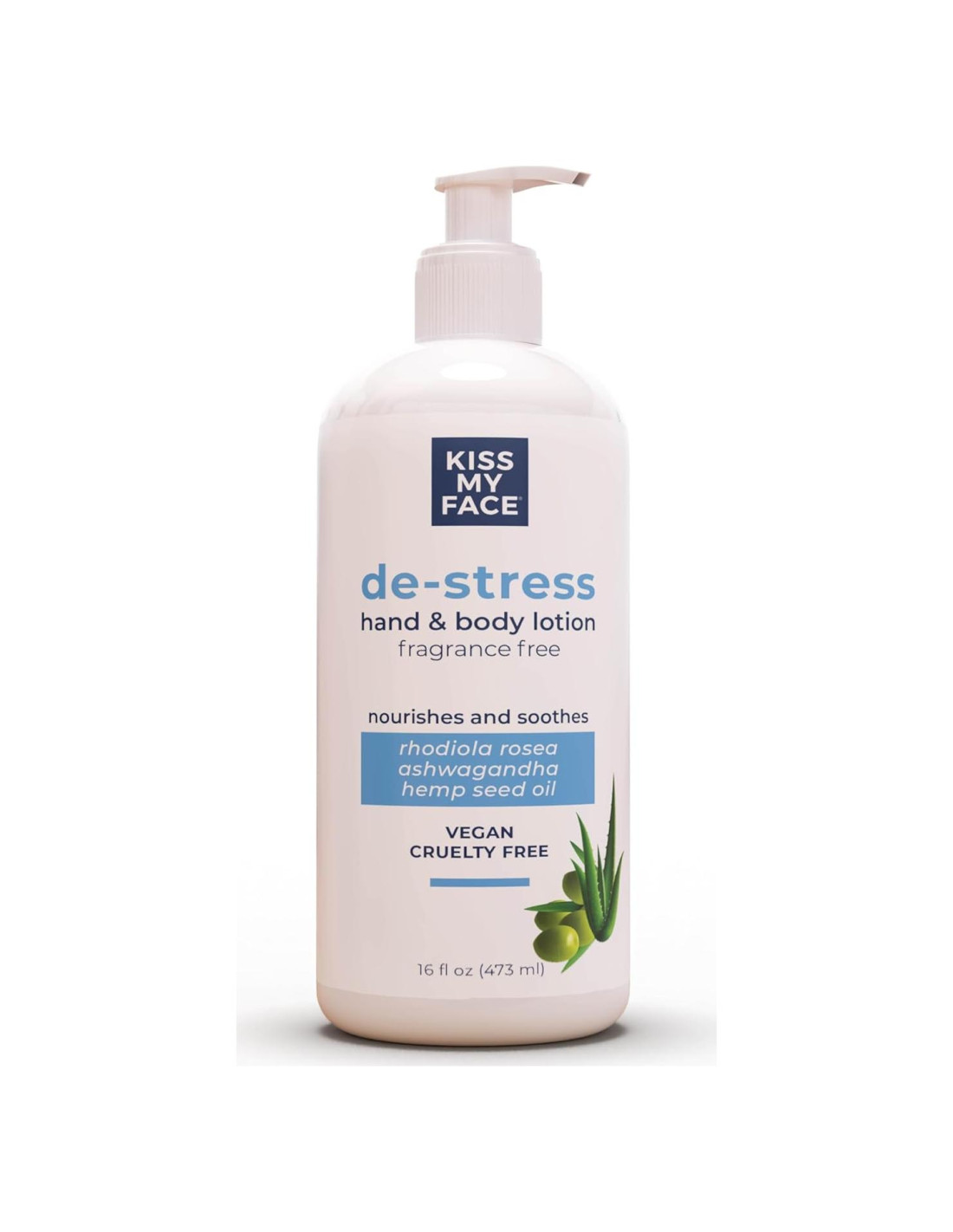 - Calma Tus Sentidos: Ayúdate a relajarte con nuestra nutritiva Loción Hidratante de Manos y Cuerpo De-Stress. La loción reconfortante contiene Rhodiola Rosea y Aceite de Semilla de Cáñamo, y Ashwagandha adaptogénica para suavizar y alisar tu piel