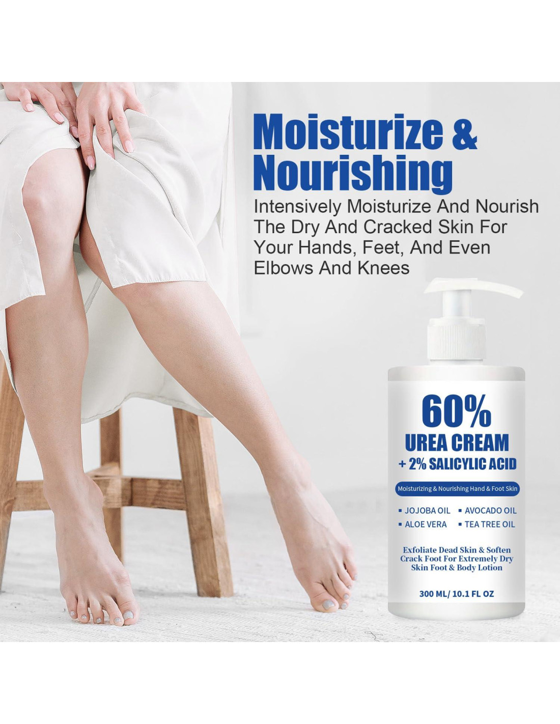 - Urea y Ácido Salicílico: Una alta concentración del 60% de urea es efectiva para tratar la piel extremadamente seca y agrietada, proporcionando hidratación profunda y suavizando la capa exterior mientras reduce las áreas callosas. El 2% de ácido salicílico ayuda a eliminar las células muertas de la superficie, alisando la piel.