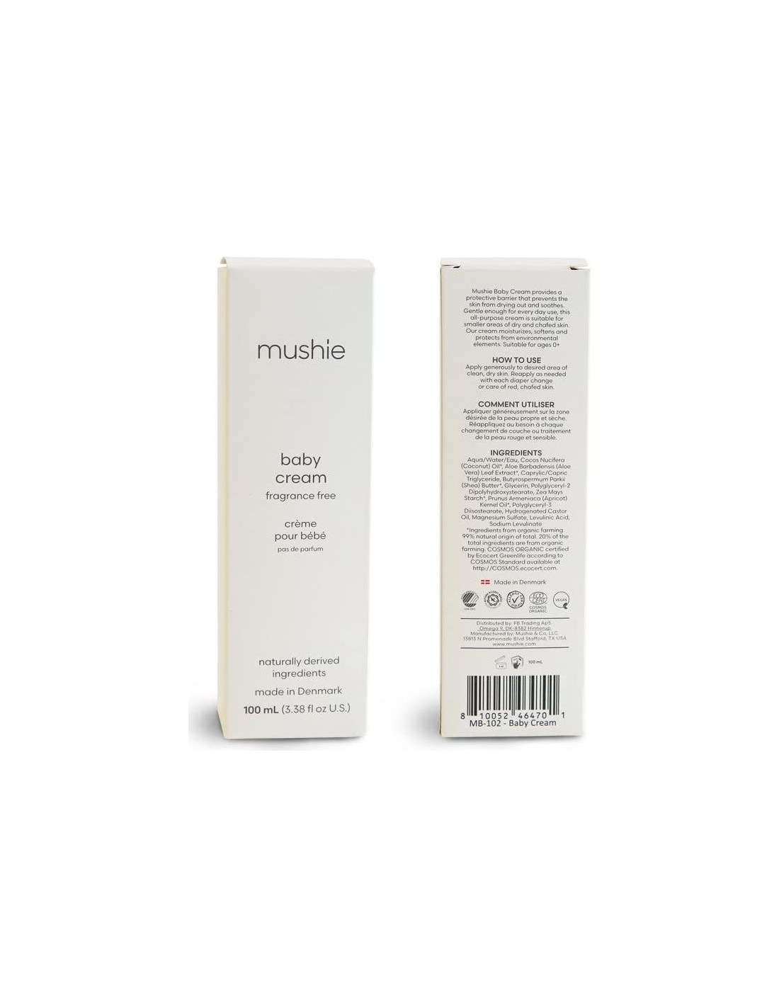 - La crema para bebés mushie proporciona una barrera protectora que evita que la piel se seque y calma. Lo suficientemente suave para el uso diario, esta crema multiusos es adecuada para áreas de piel seca y agrietada. Nuestra crema hidrata, suaviza y protege de los elementos ambientales.