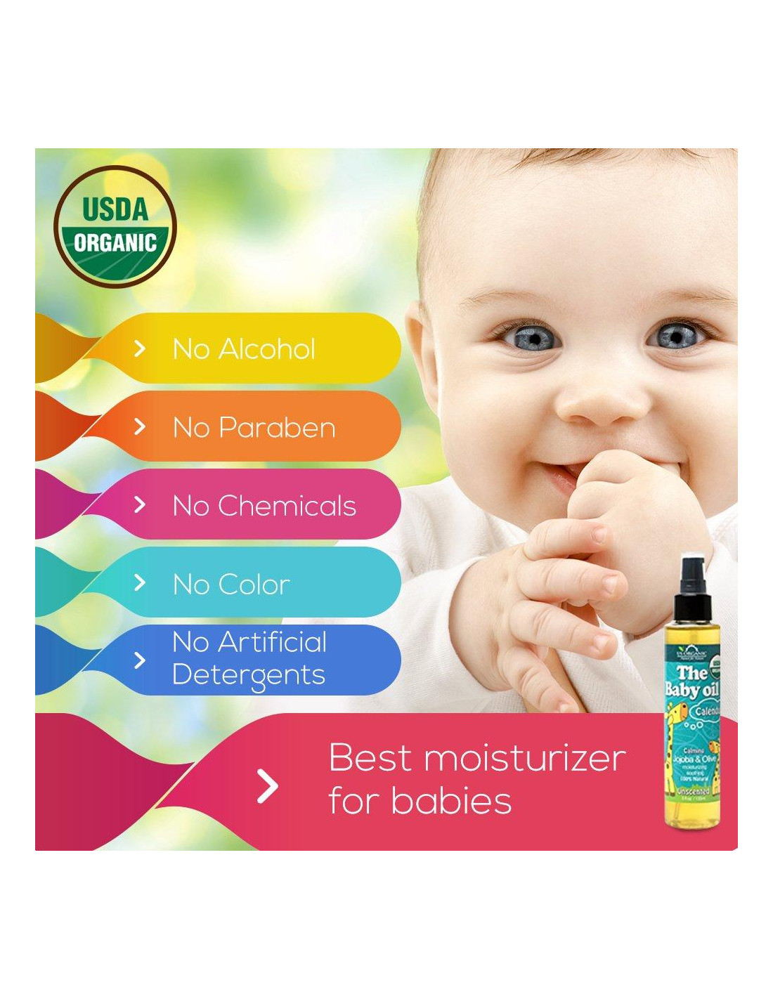 Calmante para los sentidos y reconfortante para el alma, este aceite orgánico para bebés es más que un esencial para el cuerpo. La piel tan delicada como la de un bebé necesita un cuidado y atención extra en comparación con la de un adulto. Y optar por el producto adecuado para cuidar la piel de un bebé puede ser una gran tarea. Aquí es donde entra en juego el Aceite Orgánico Verdadero para Bebés con caléndula y otros ingredientes seguros cuidadosamente seleccionados de la reconocida casa de EE. UU. Orgánico. Con la cuidadosa adición de jojoba calmante y caléndula y las propiedades hidratantes del aceite de oliva, este aceite para bebés se asienta suavemente sobre la piel de su bebé. Retiene la humedad para una sensación suave y flexible. Es orgánico según el USDA con los mejores resultados que puede esperar. Mientras que el nivel de tolerancia de la piel de su bebé es delicado, nuestro aceite para bebés perfectamente mezclado sin alcohol, parabenos, conservantes, aditivos sintéticos, fragancias o colorantes artificiales puede ser una opción segura, si no mejor, para el uso diario. "Producto increíble. Lo recomiendo encarecidamente para las mamás y papás que están interesados en NO poner productos químicos y cosas malas en sus bebés."