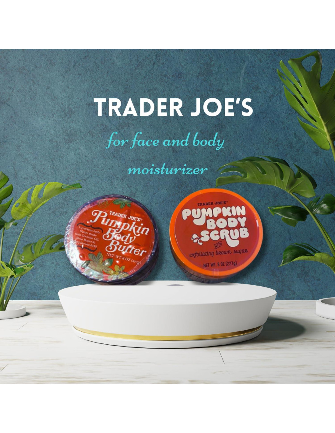 - Inclusión del Paquete: 1 Exfoliante Corporal de Calabaza de Trader Joe's 8 oz y 1 manteca corporal 8 oz por frasco
