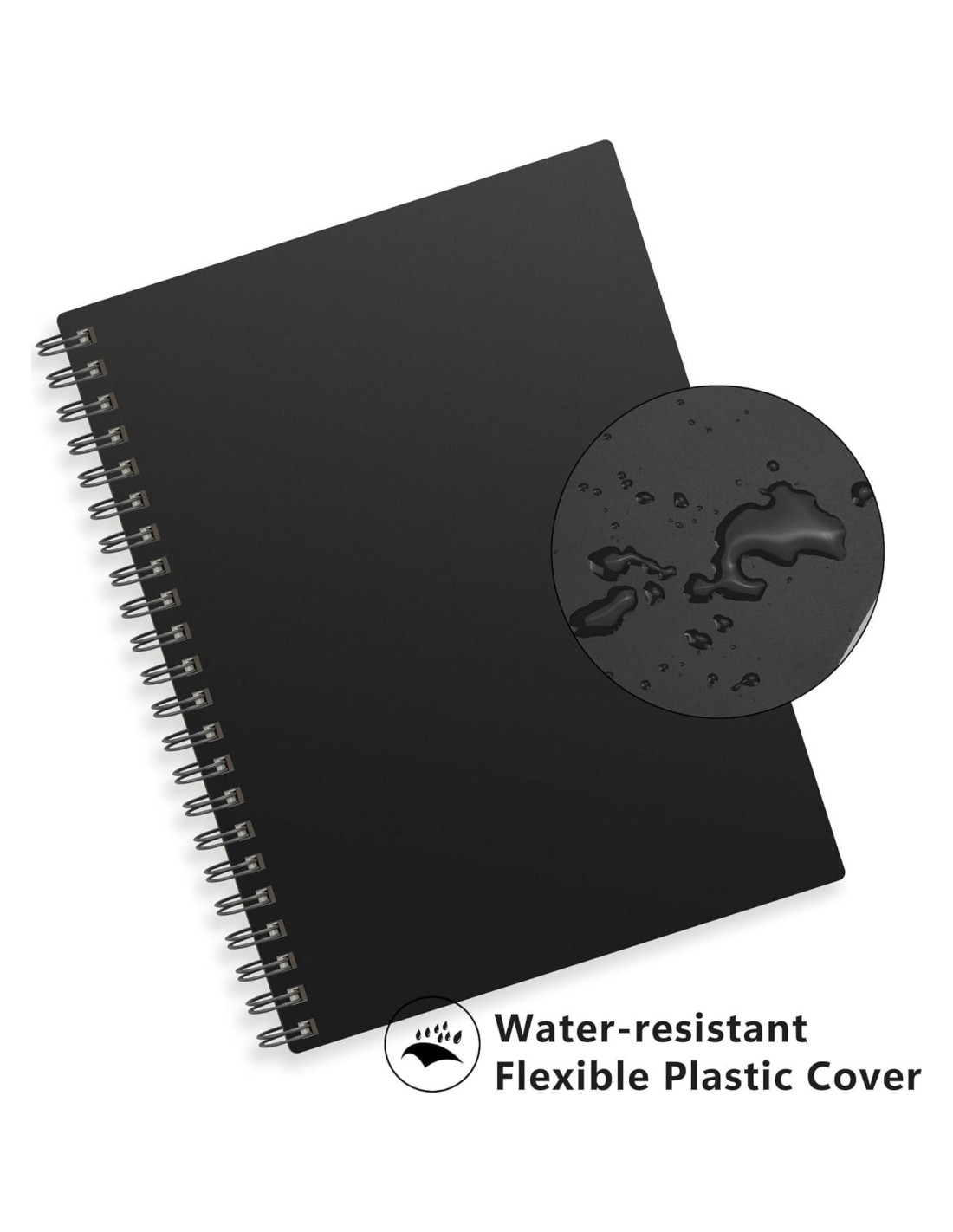 - ENCUADERNACIÓN DE DOBLE ALAMBRE: El Cuaderno de Rayas Universitarias RETTACY cuenta con una resistente encuadernación de doble alambre, fácil de pasar las páginas y la capacidad de quedar plano a 180. La cubierta está hecha de plástico PVC que es impermeable y proporciona protección para tus valiosas notas.