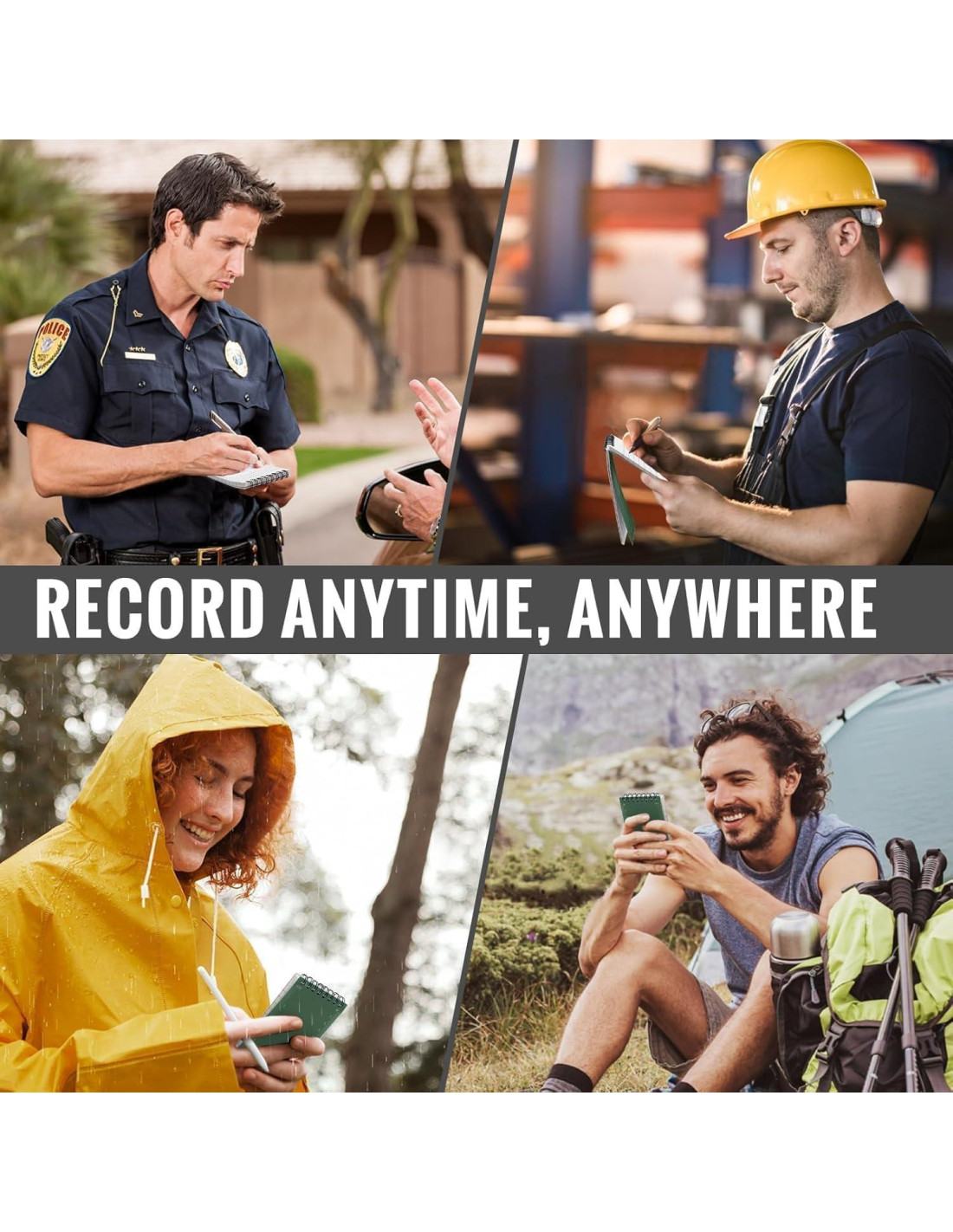 - Mantente Organizado, Llueva o Truene: No hay necesidad de preocuparse por que tus notas se arruinen por el clima inesperado. Nuestros blocs de notas impermeables están diseñados para resistir agua, sudor, grasa, barro e incluso accidentes de lavandería, tus notas permanecerán seguras y legibles, permitiéndote capturar ideas, inspiraciones y recuerdos sin preocupaciones.