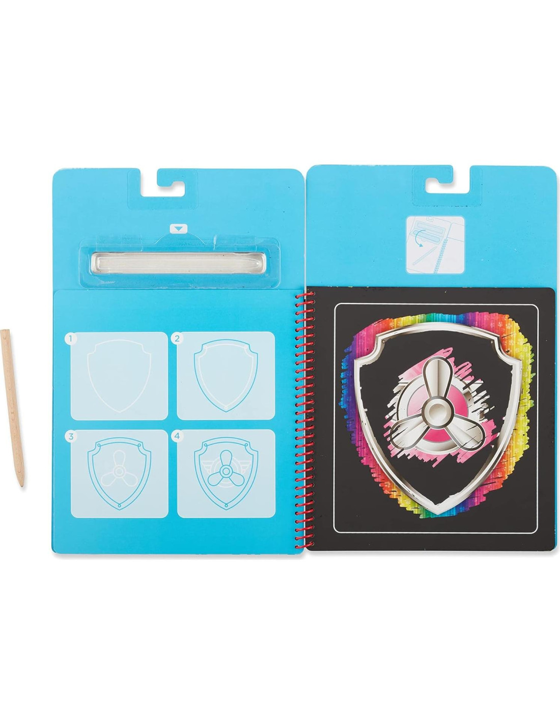 Este compacto y portátil cuaderno de actividad Scratch Art permite a los niños llevar la creatividad a cualquier lugar que deseen. Usa el estilógrafo de madera incluido para grabar líneas, puntos y patrones para revelar obras de arte coloridas ocultas, con Skye y otros amigos de PAW Patrol. Las 10 escenas incluyen actividades de punto a punto o plantillas para estimular la creatividad, de modo que los niños puedan hacer que cada página sea única. El estilógrafo y la hoja de plantillas se almacenan en el cuaderno encuadernado en espiral, lo que lo convierte en una gran actividad de viaje sin desorden para niños de cinco años en adelante. PAW Patrol siempre está listo para ayudar, inspirando a los preescolares con una mezcla de trabajo en equipo, aventura y humor mientras desarrollan habilidades sociales, emocionales y de desarrollo a través del juego.