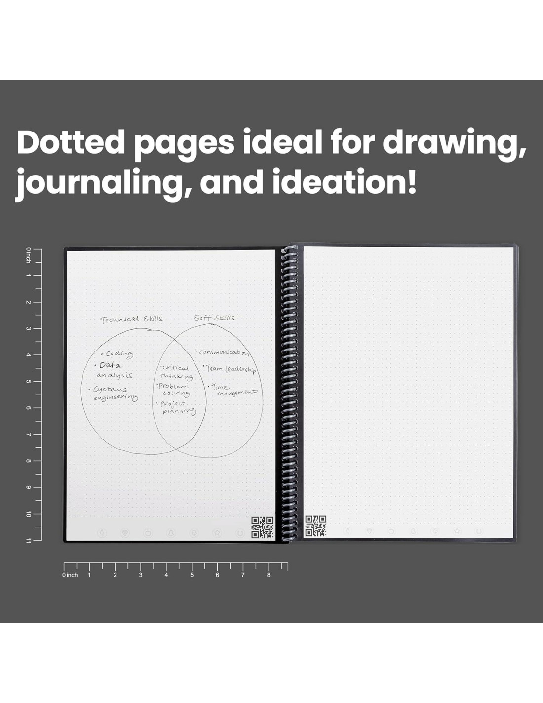 - Materiales de Alta Calidad y Duraderos: Fabricado con papel punteado reutilizable y premium, el Rocketbook Core cuenta con una encuadernación en espiral y una cubierta impermeable. El diseño de cuadrícula ofrece flexibilidad para todo, desde el journaling hasta esbozos geométricos.