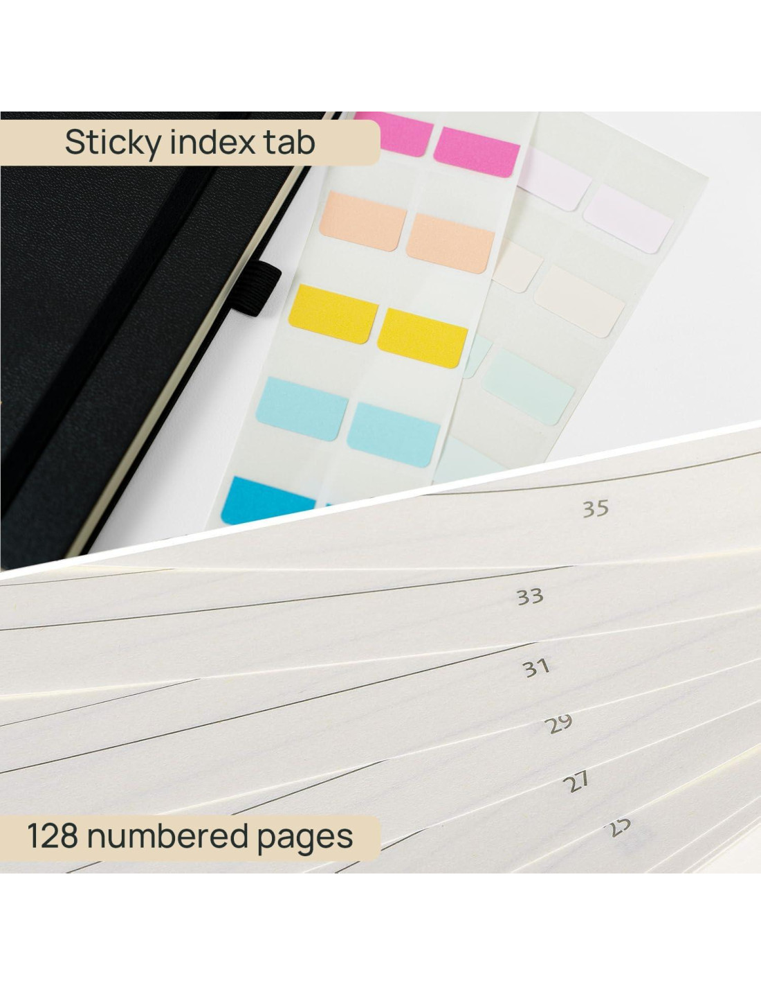 - Papel Premium de 120 GSM: Experimenta el lujo del papel premium con nuestro cuaderno hecho de papel libre de ácido de 120 GSM en marfil claro. Di adiós a las sombras y al traspaso de tinta con nuestras páginas más gruesas que pueden acomodar con confianza la mayoría de bolígrafos, lápices y marcadores.